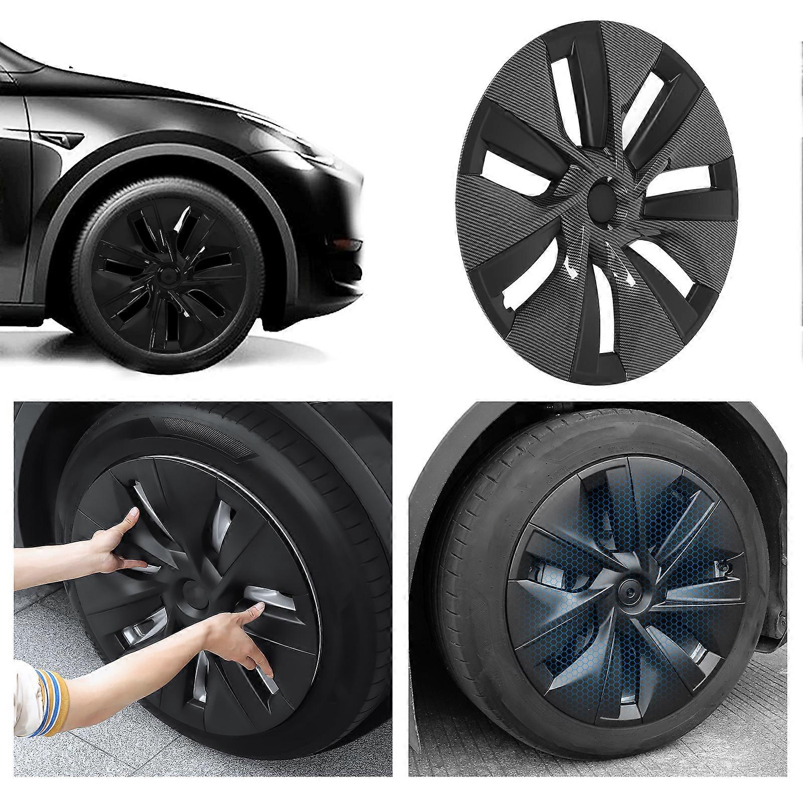 4 Pcs 19in Carbon Fiber Style Wheel Hub Caps for Model Y 2020-23