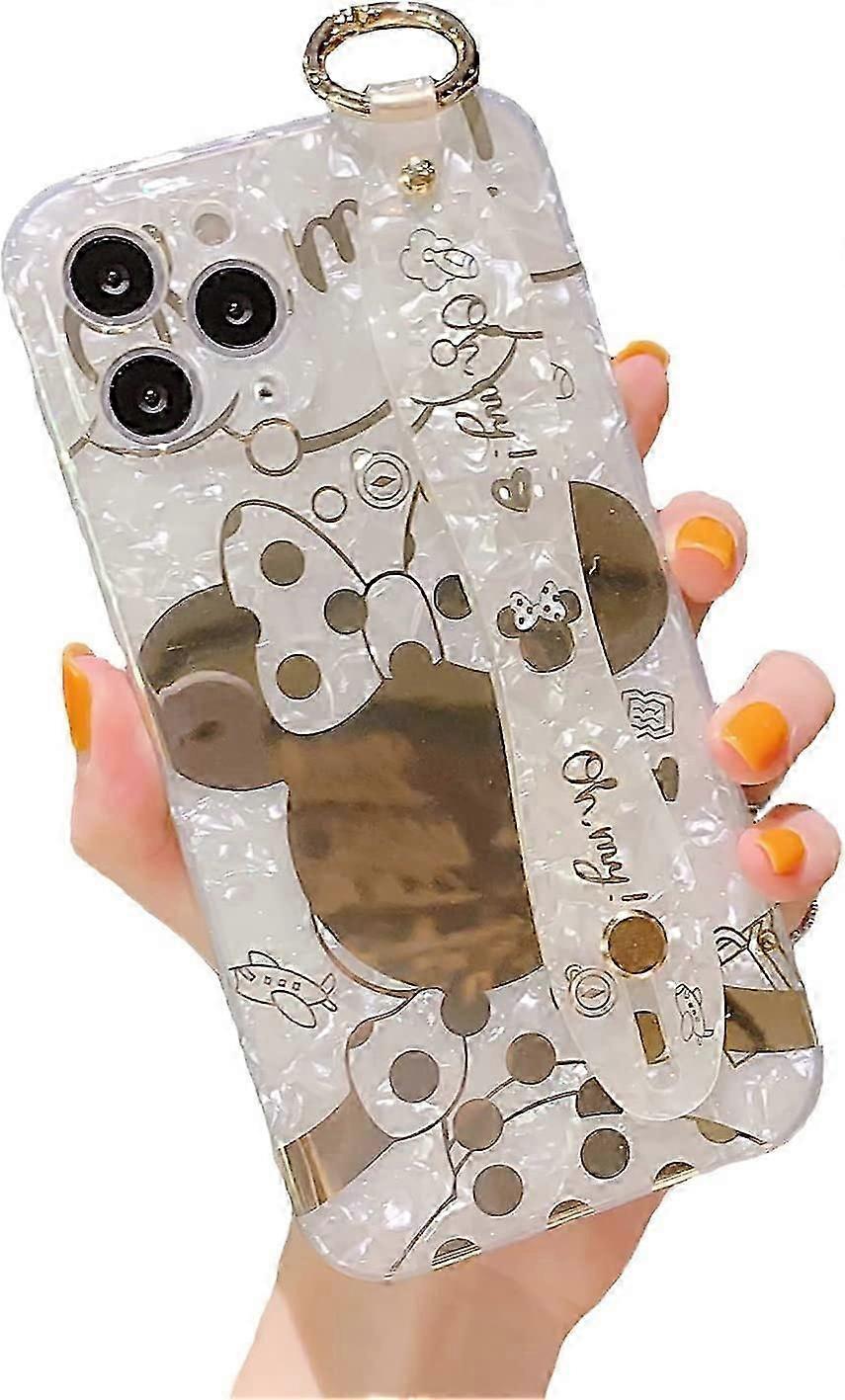 Cute Case compatible with iPhone 12 Pro Max, Cartoon Minnie Mouse Sparkle Bling Cover, Wrist Strap Kickstand Soft TPU Shockproof Protective compatible