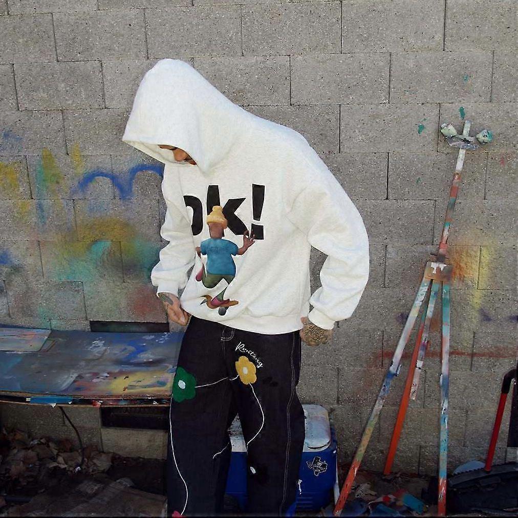 Retro Cartoon Print Skate Hoodie Unisex Couple Pullover Sweatshirt Loose Fit