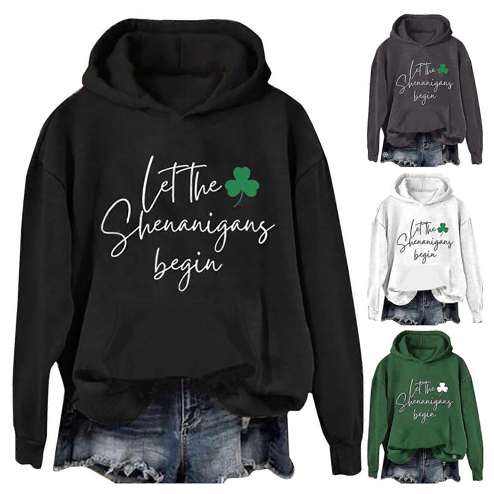 Stylish Round Neck Casual Lettering Shamrock Print Long Sleeve Sweatshirt