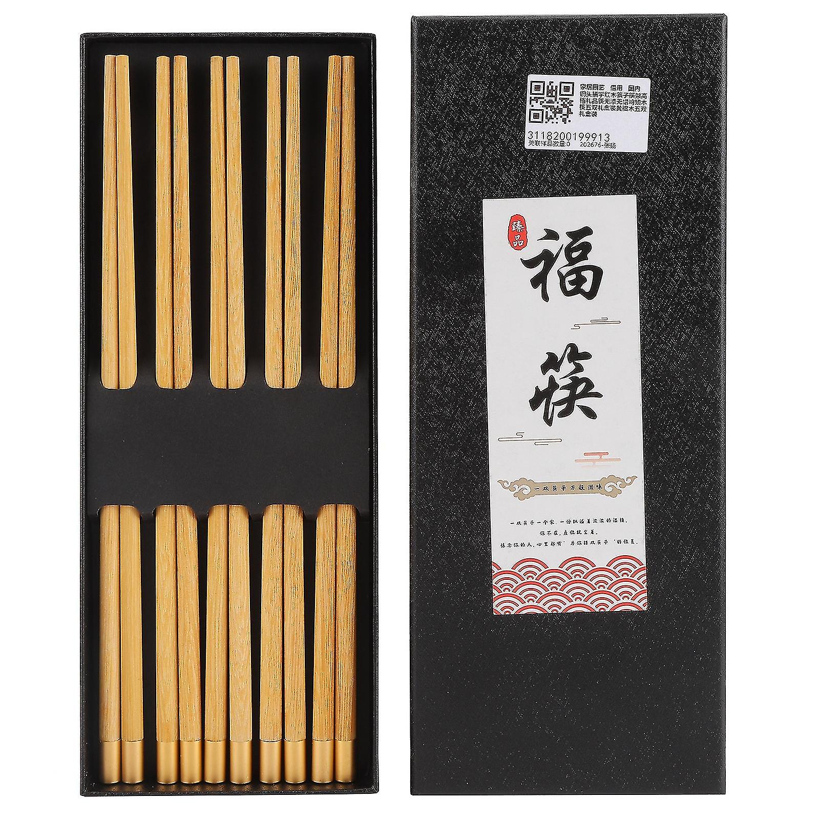 5 Pairs Chinese Style Wooden Chopsticks Set, Safe Handcrafted Tableware, Gift for Family and Friends, Yellow Sandal