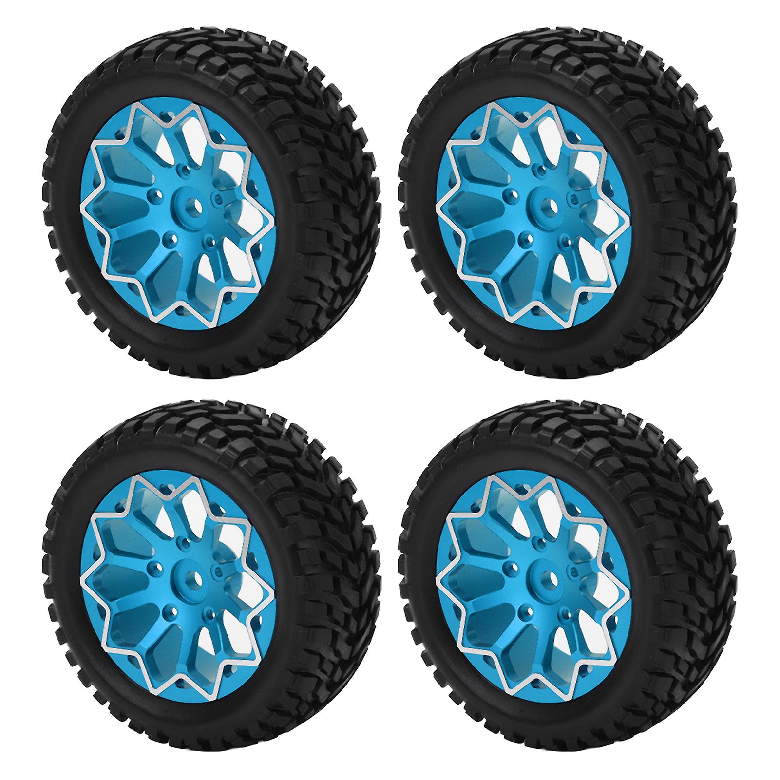 4Pcs 1/10 RC Car Aluminum Alloy Rubber Tires for Tamiya TT01 Blue