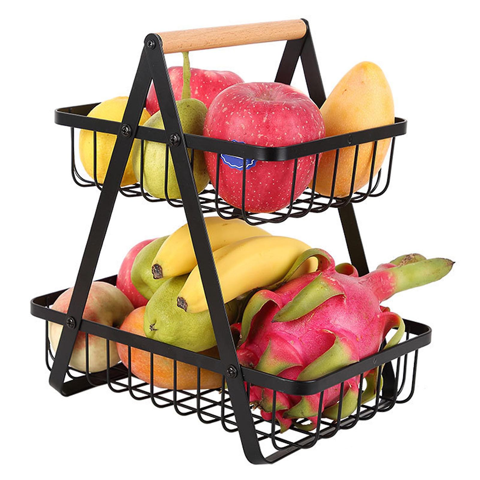 2 Tier Carbon Steel Fruit Basket Stand, 32x20x7cm, Black