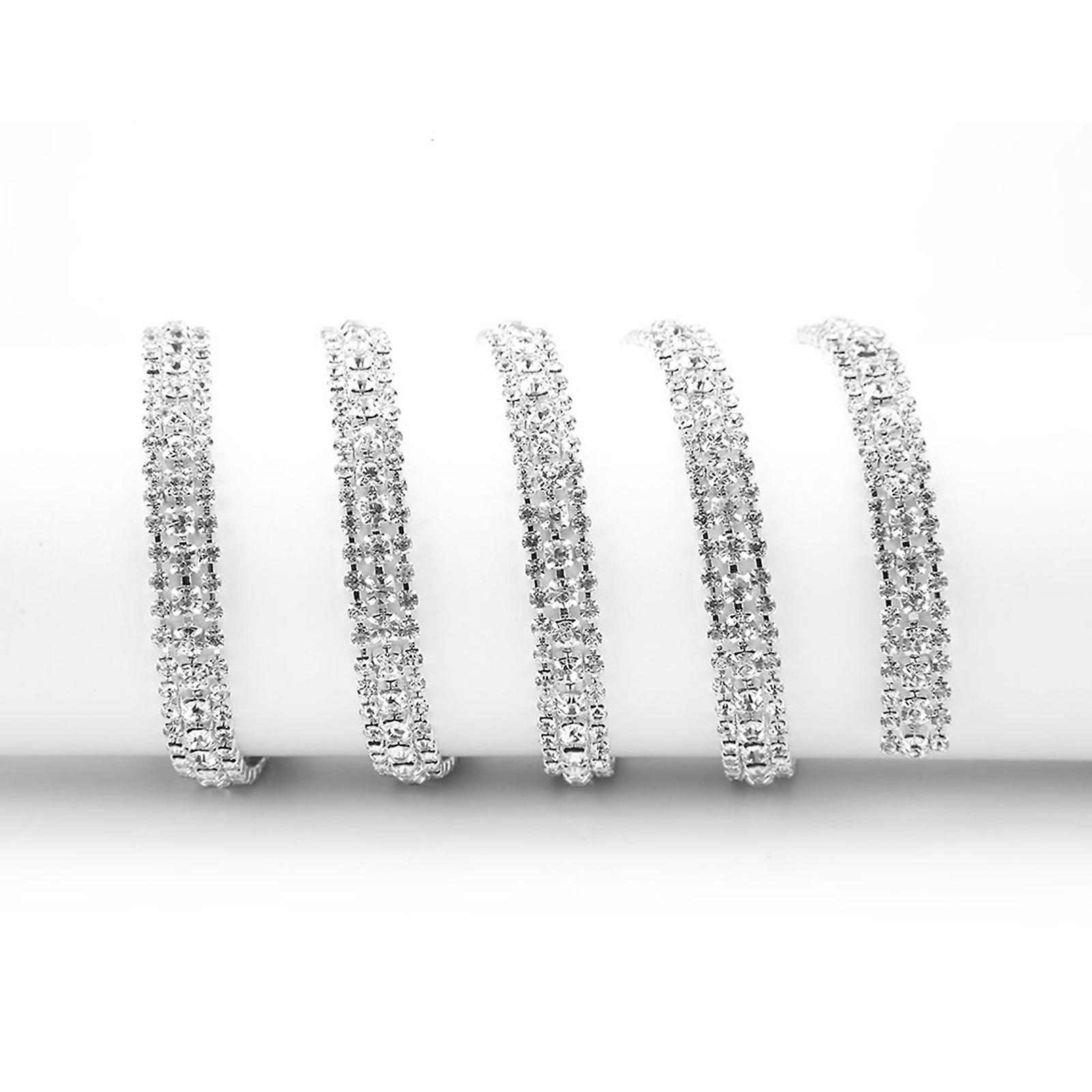 3 Rows DIY Sew-on Crystal Rhinestone Chain AB Color Clothing Decoration Accessories #4 (Silver)