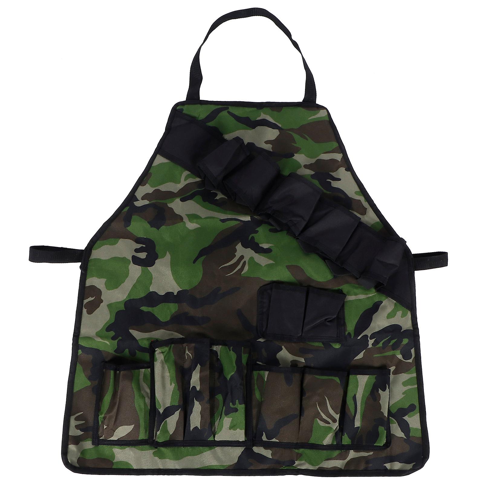 Multi Pockets Cooking Apron 600D Oxford Fabric Camouflage Picnic Barbecue Aprons Waterproof(Military Green )