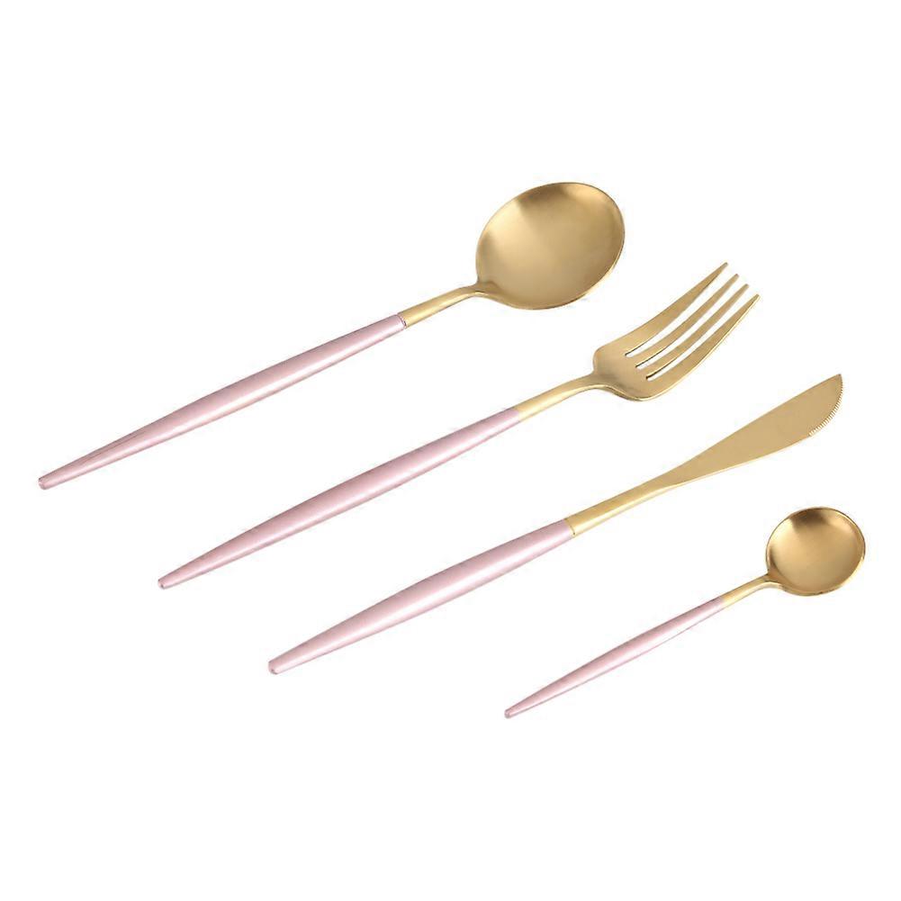 4Pcs Set Stainless Steel Colored Tableware Spoon Fork Knife Dinnerware Home Use Pink+Golden Tableware Set