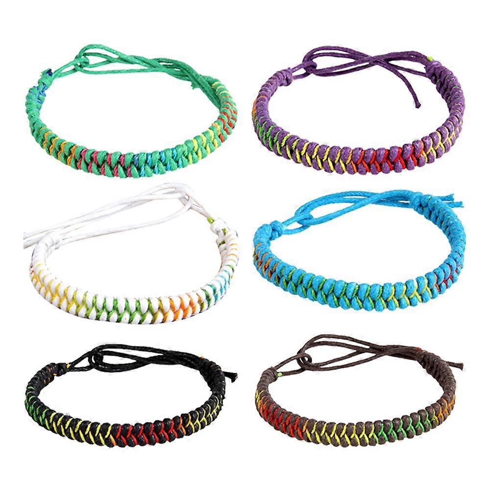 Colorful Hand Knitting Bracelet for Decoration 6Pcs Wax Rope Wrist Band Set