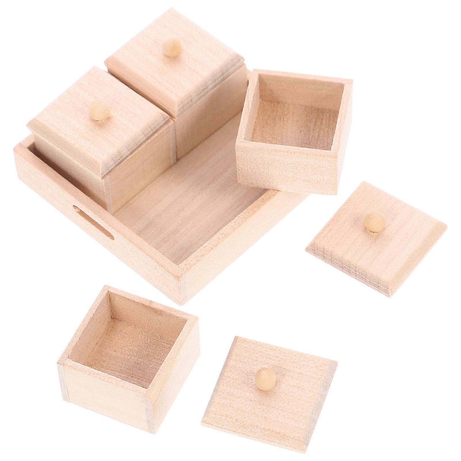 Doll House Tray Mini Storage Tray for Decoration 1Set Wood Beige