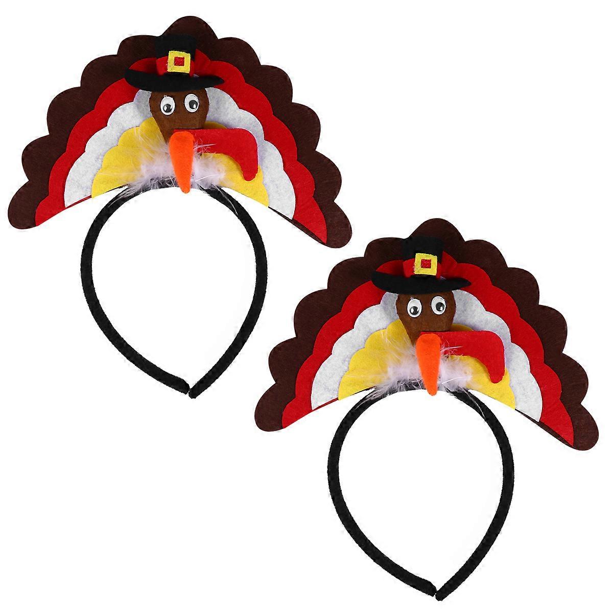 Thanksgiving Turkey Headband 2Pcs Assorted Color Felt Cloth for Family Fun Celebration Decoration
