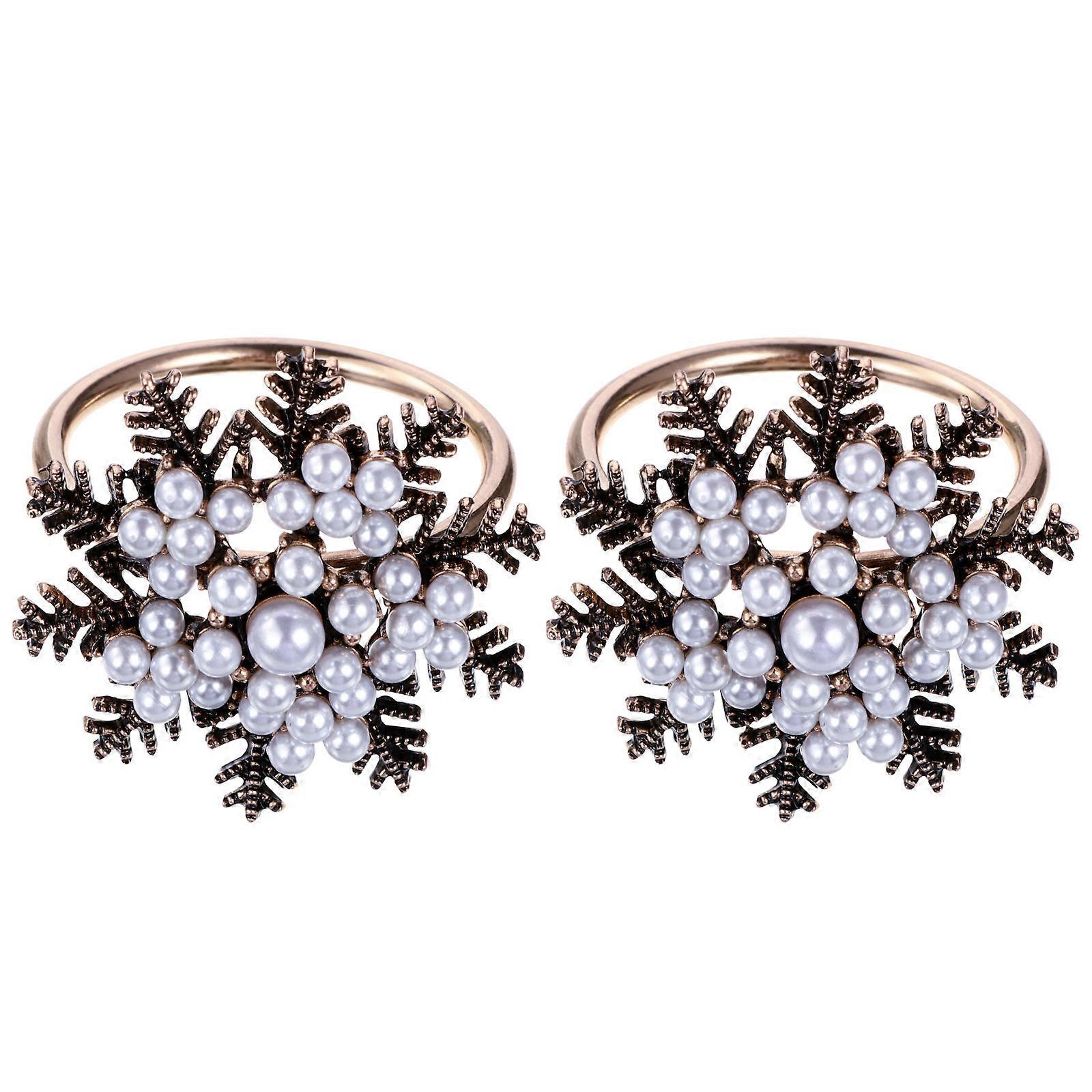 Pearl Napkin Buckle Stainless Steel for Decoration 2Pcs Christmas Dinner