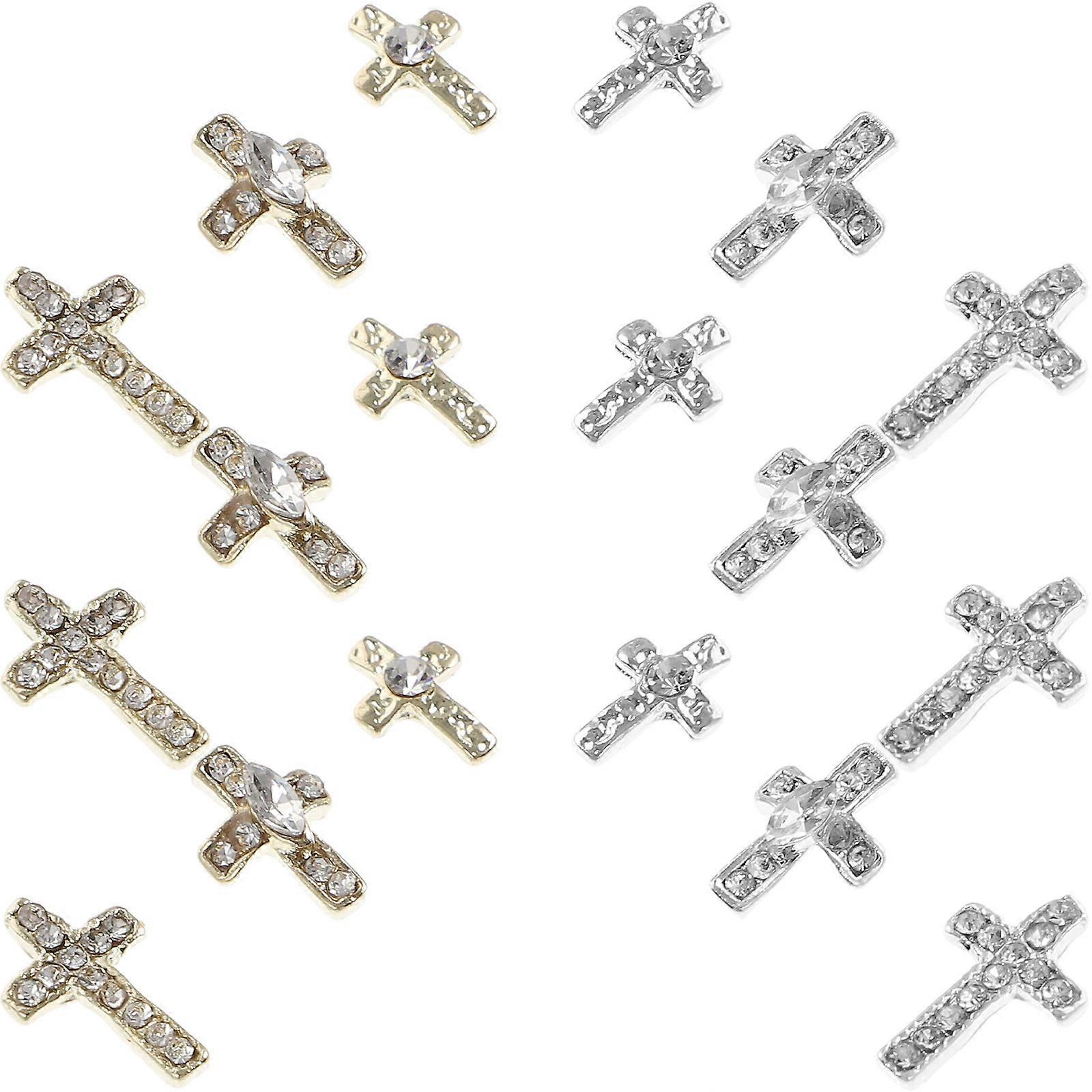 Assorted Color Cross Nail Charms with Rhinestones for Decor Zinc Alloy Compact Size