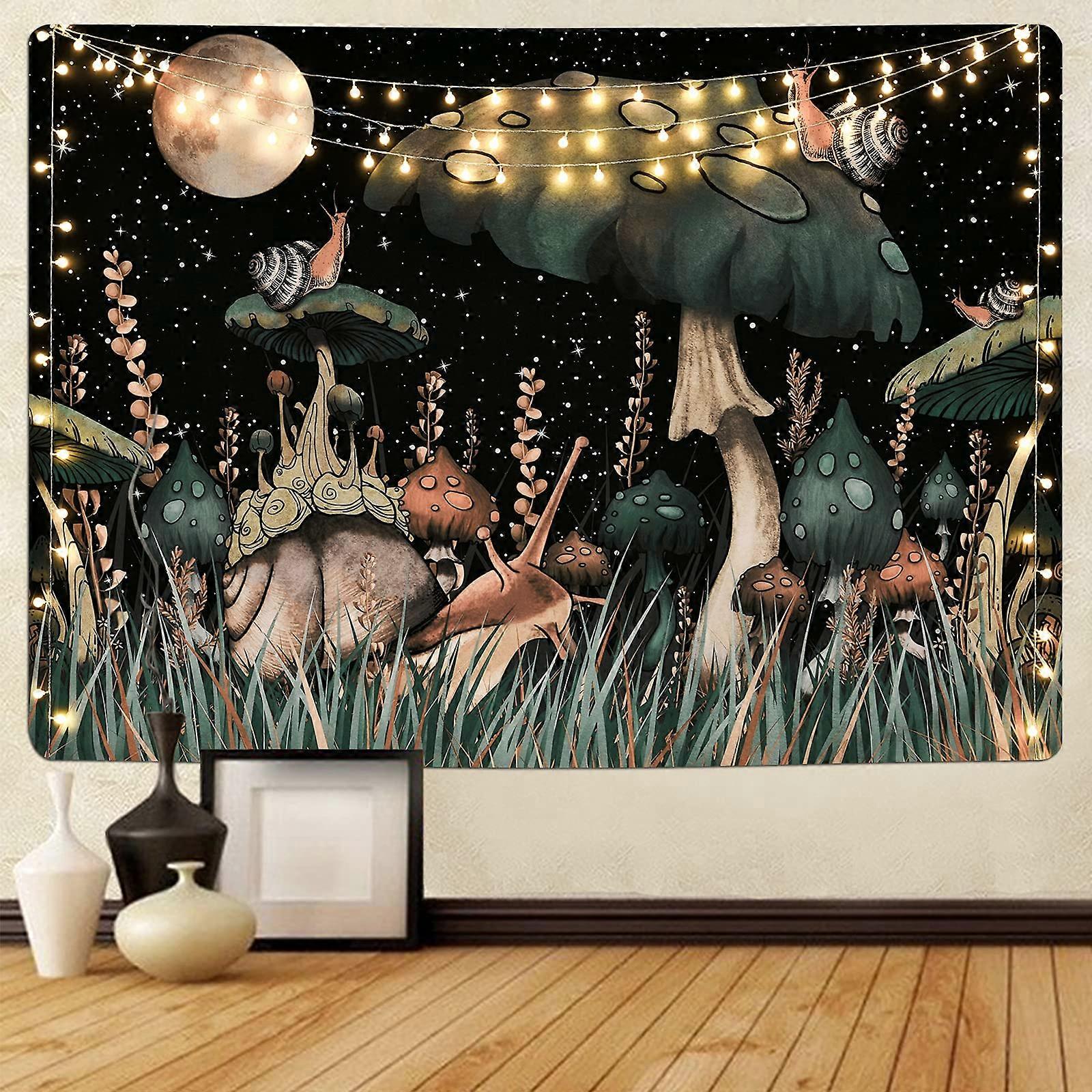 Mushroom Wall Hanging Tapestry 82.7x59.1 Inches Black Forest Plants Snail Design for Bedroom Living Room Decor 210x150cm