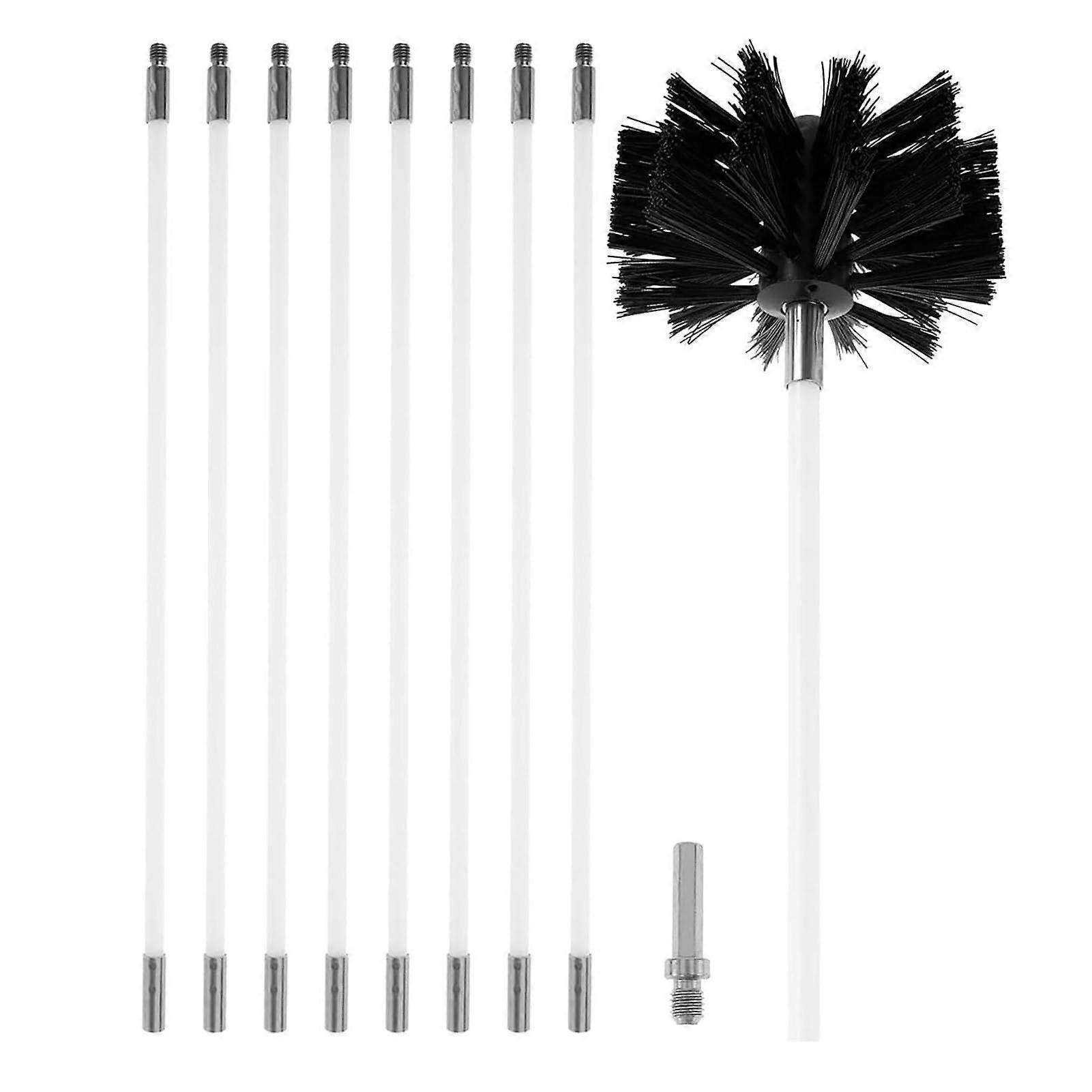 Chimney Cleaning Brush Kit with 25ft Flexible Extension Rods for Fireplace Flue Vent Pipe (9 Rods, 410mm)