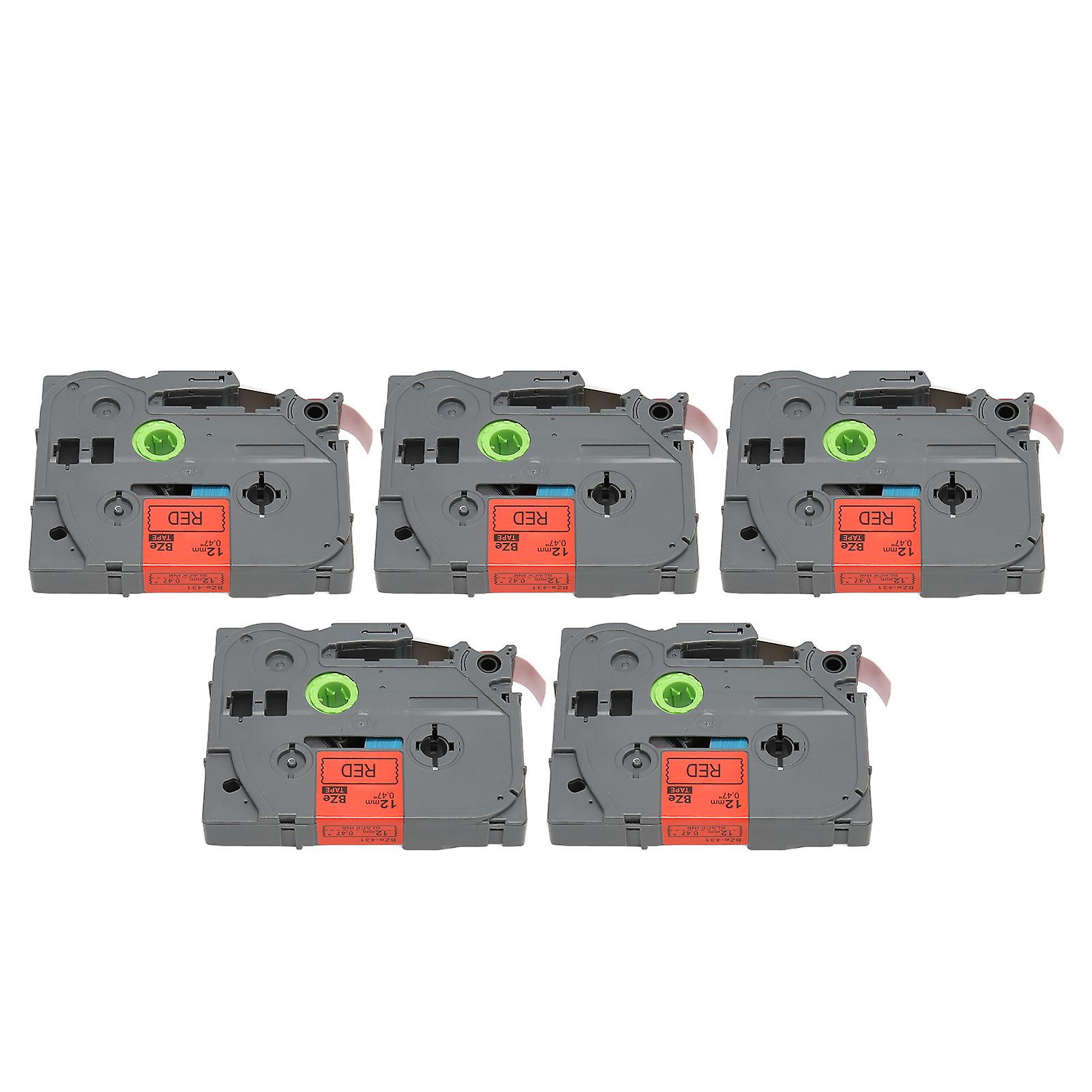 5 Pcs 12mm 0.47 Inch Black on Red Label Maker Tape for PT D210