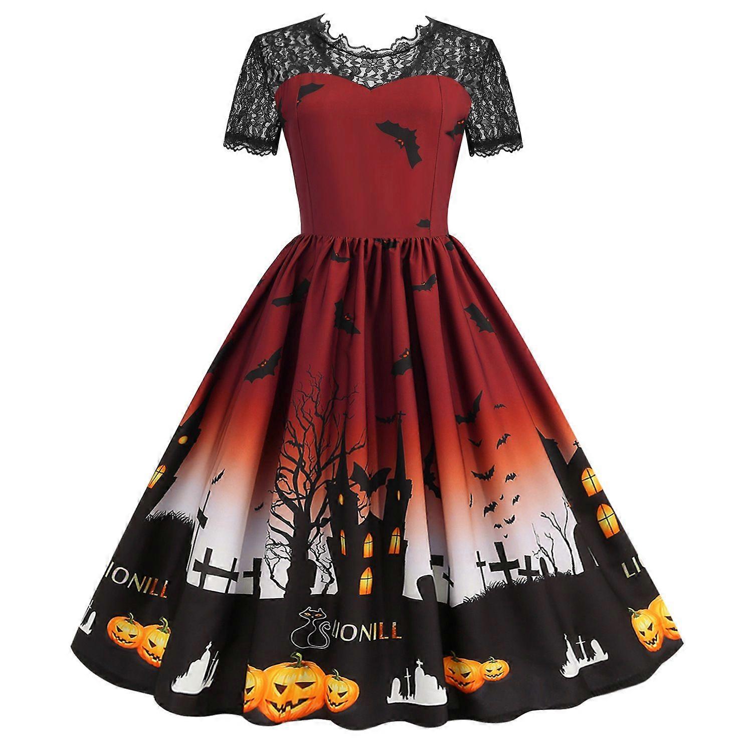 Halloween Women's Dress Witch Costume Gothic Swing Dress Party Gown