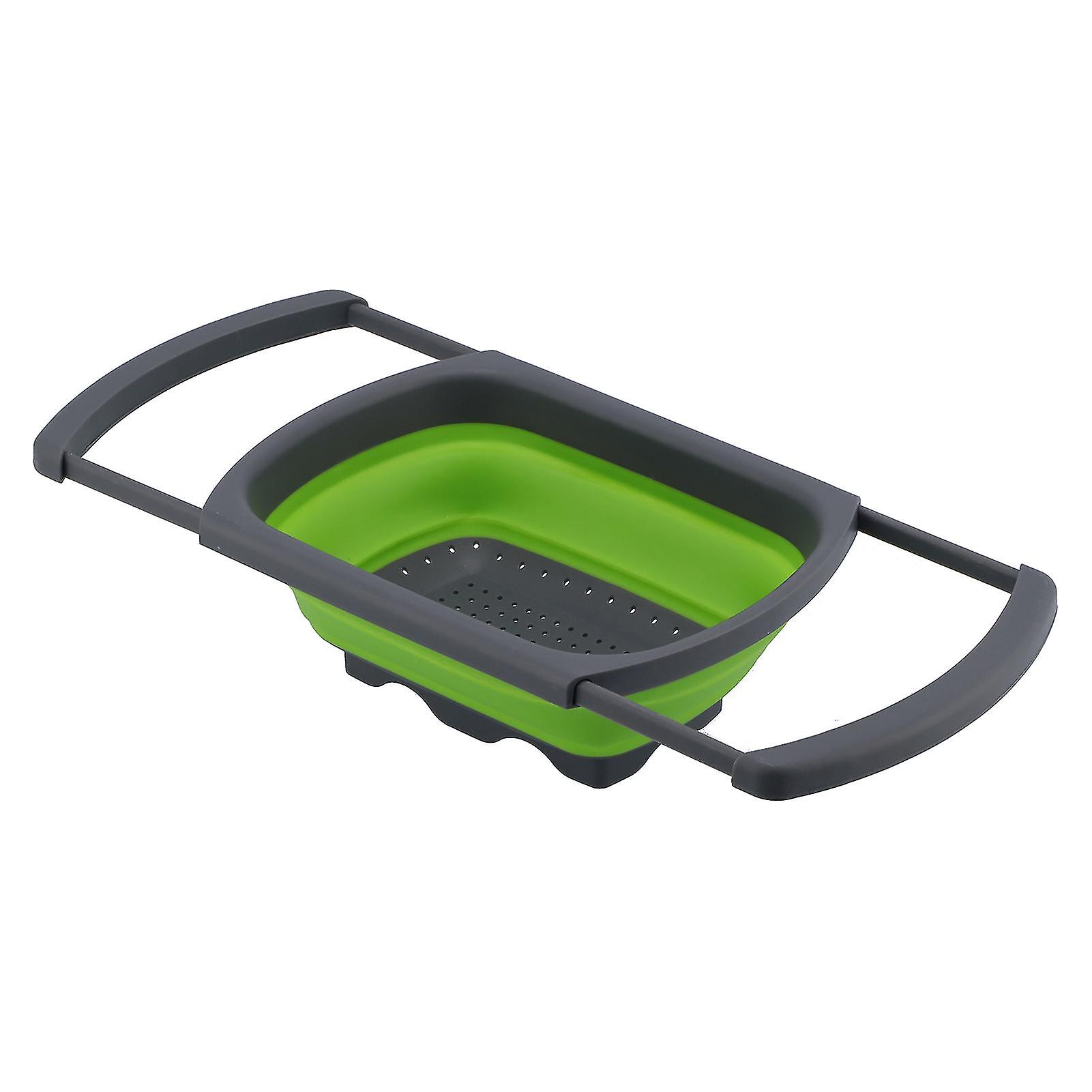 Folding Drain Basket Retractable Fruit Vegetable Washing Collapsible Drain Basket for Home Kitchen UseGreen