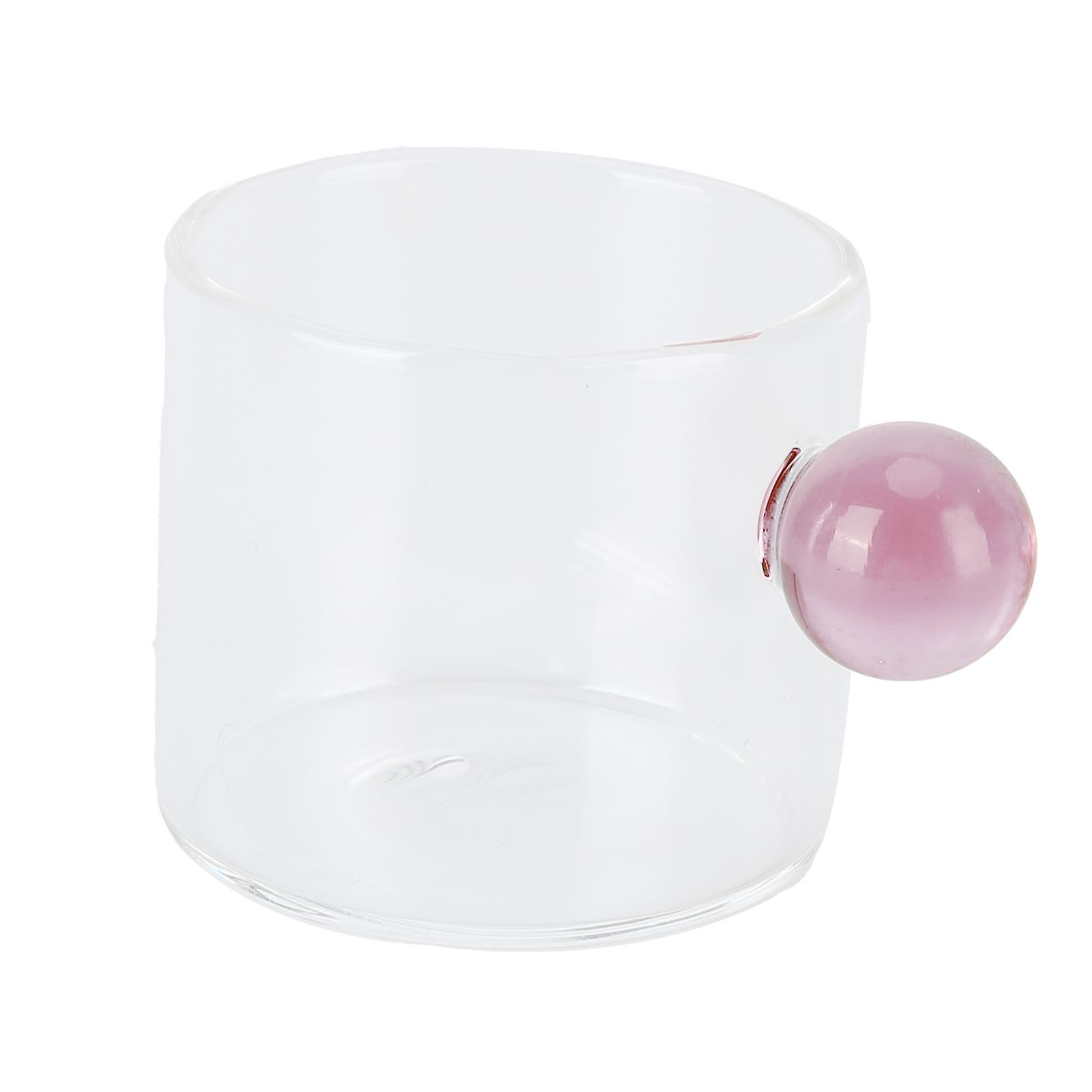 Teacup Glass Mug Transparent Heat Resistant Glass Glass Round Cup with Ball Handle 120mlPink Handle