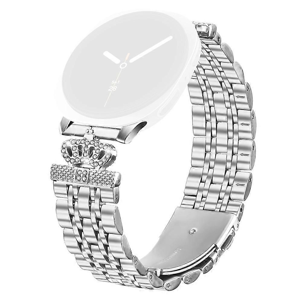 Silver Watch Band with Connector Compatible For Samsung Galaxy Watch Ultra (2025) 47mm 7-Bead Rhinestone Crown Metal Strap