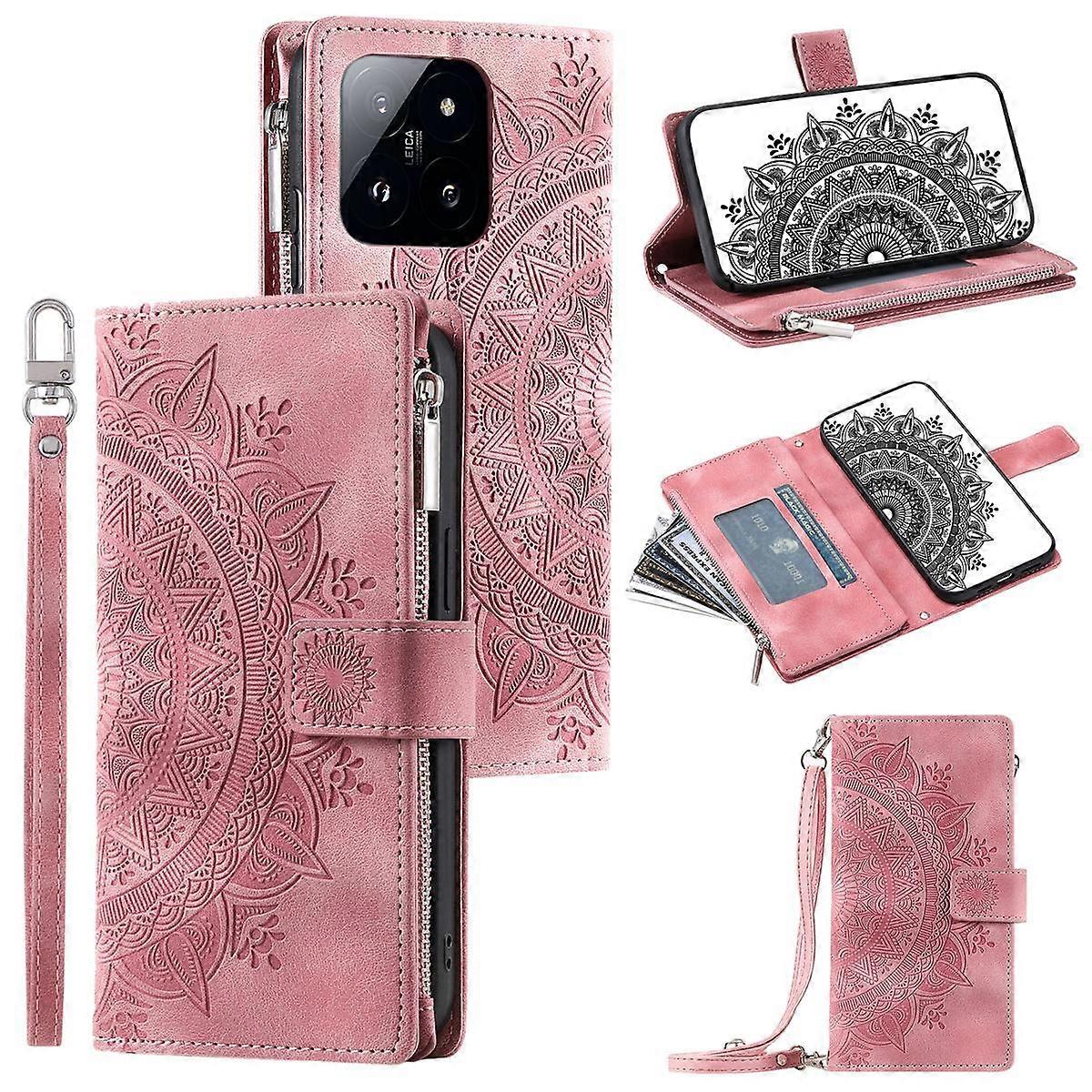 Style 006 For Xiaomi 14 Pro Case Leather Wallet Cover with Hand Strap and Shoulder Strap - Rose Gold