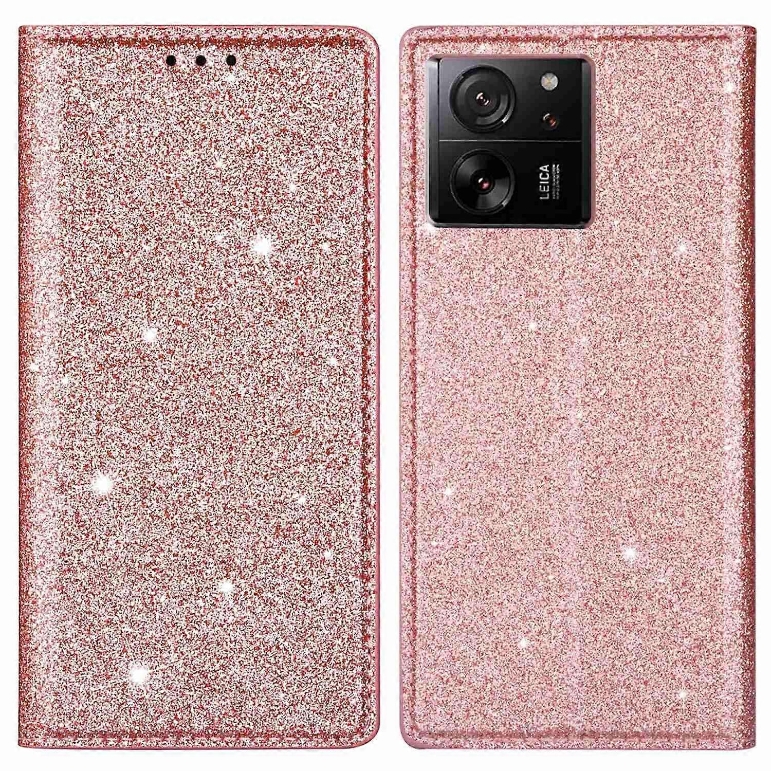 For Xiaomi 13T/13T Pro/Redmi K60 Ultra Case PU Leather Glittery Phone Cover - Rose Gold