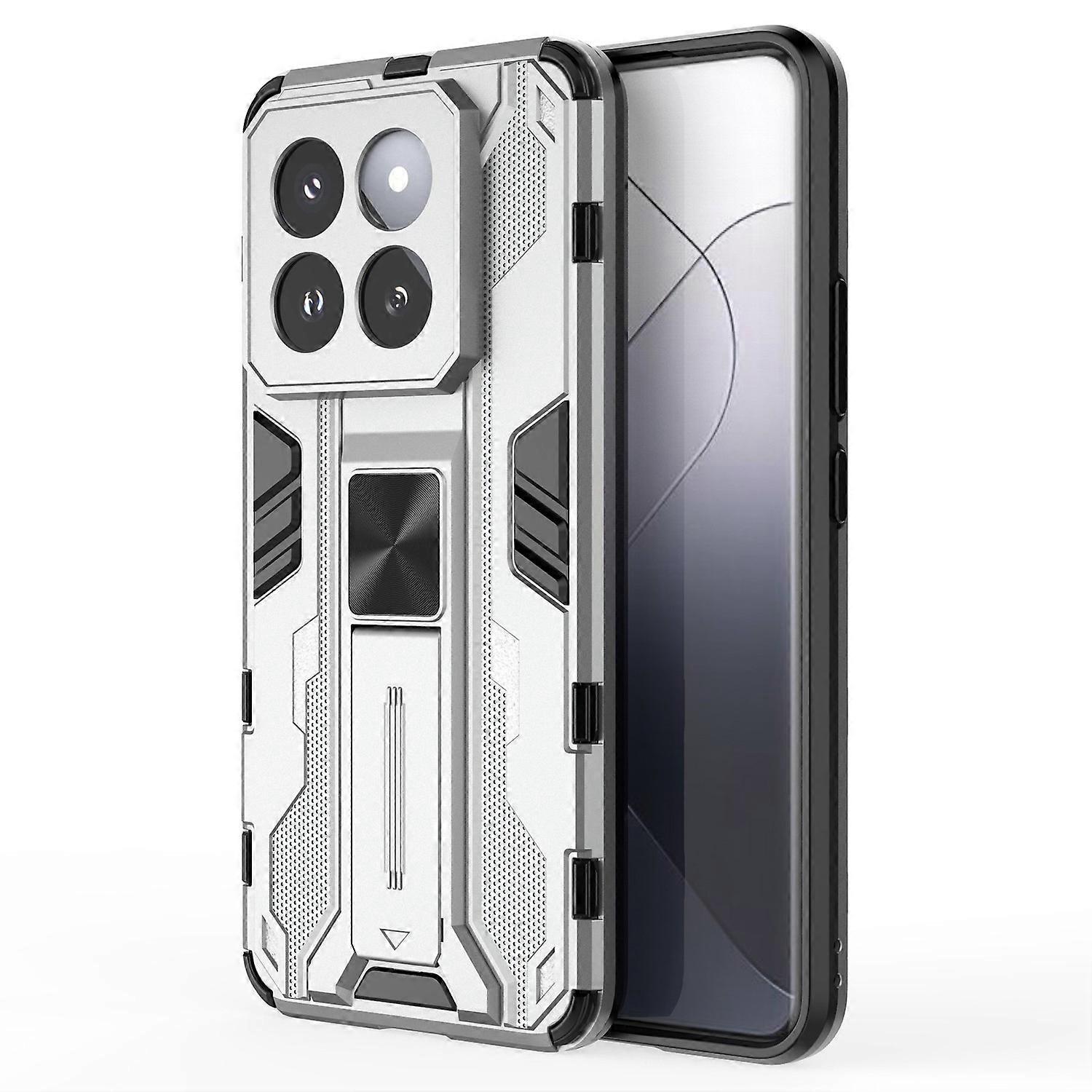 For Xiaomi 14 Pro Case Anti-scratch PC+TPU Kickstand Phone Back Cover - Silver