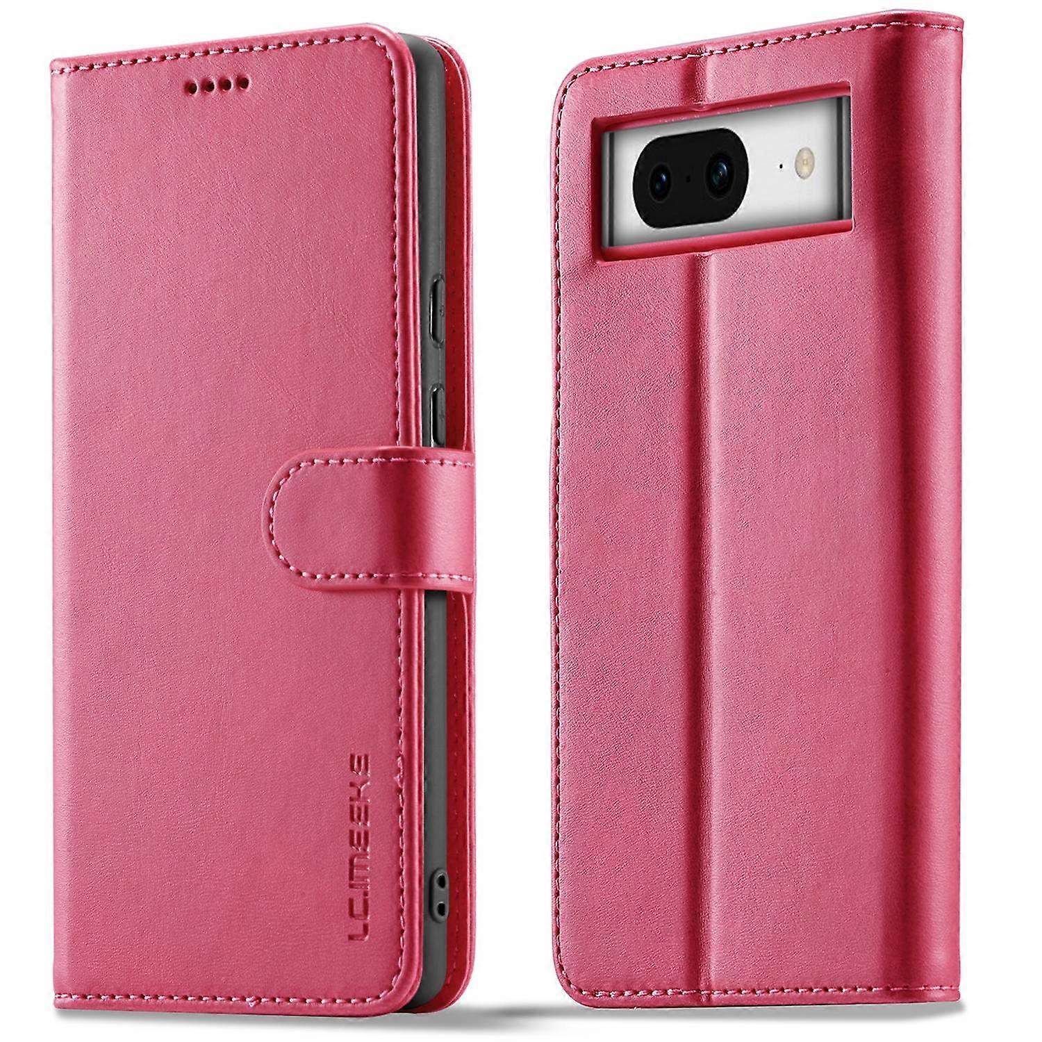 LC.IMEEKE For Google Pixel 8a Case Calf Texture PU Leather Phone Wallet Cover - Rose