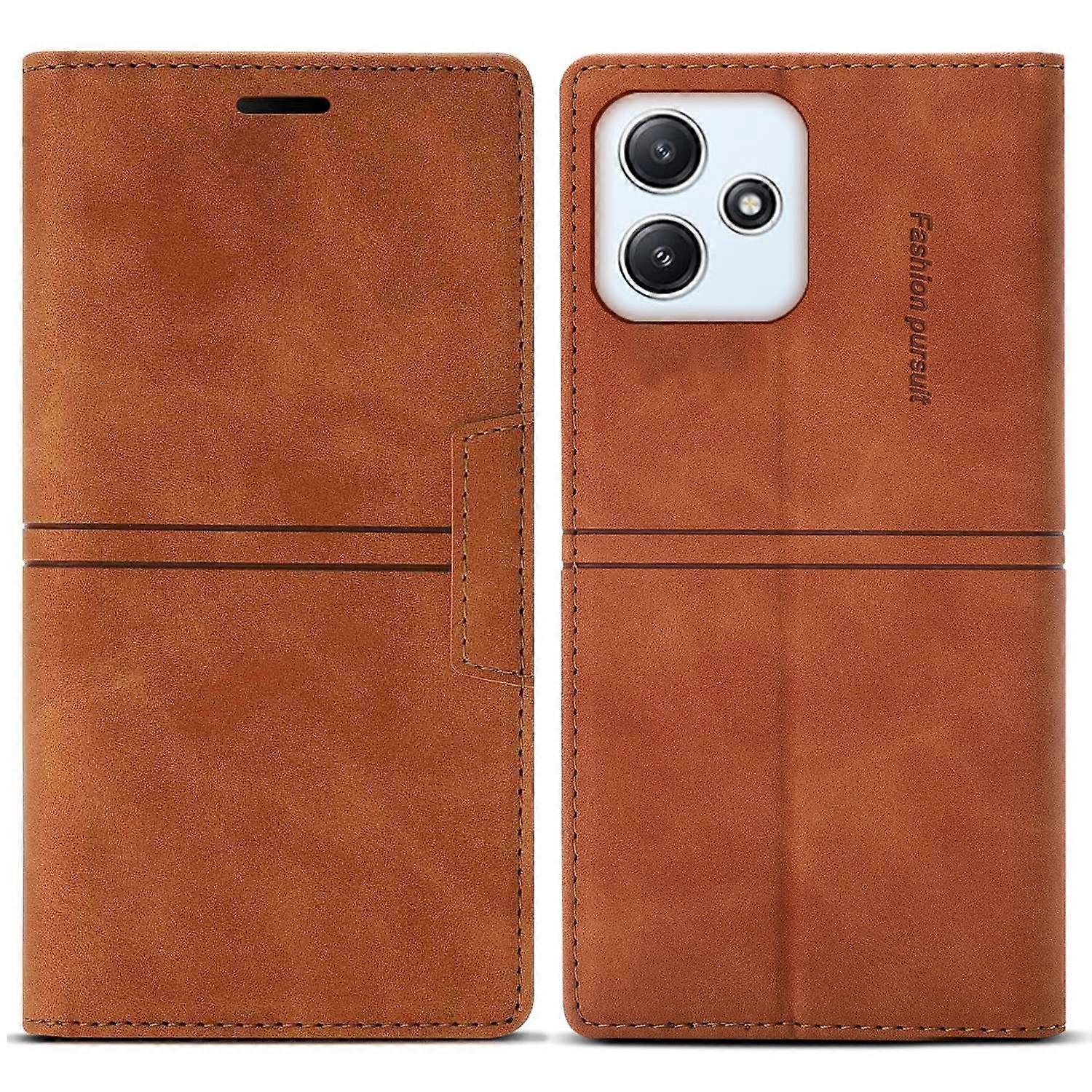 For Xiaomi Redmi 12 4G/5G (Global)/Poco M6 Pro 5G Case Wallet PU Leather Phone Cover - Brown