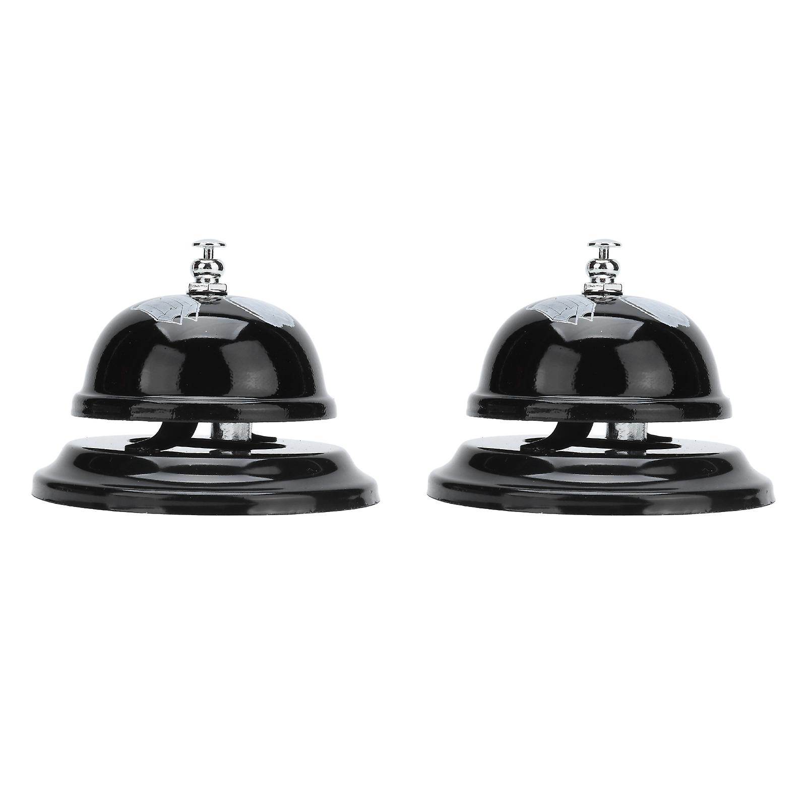 2Pcs Service Bell Exquisite Clear Sound Classic Shape Polishing Glossy Nonslip Base Classroom Bell for Hotel Restaurant HomeBlack