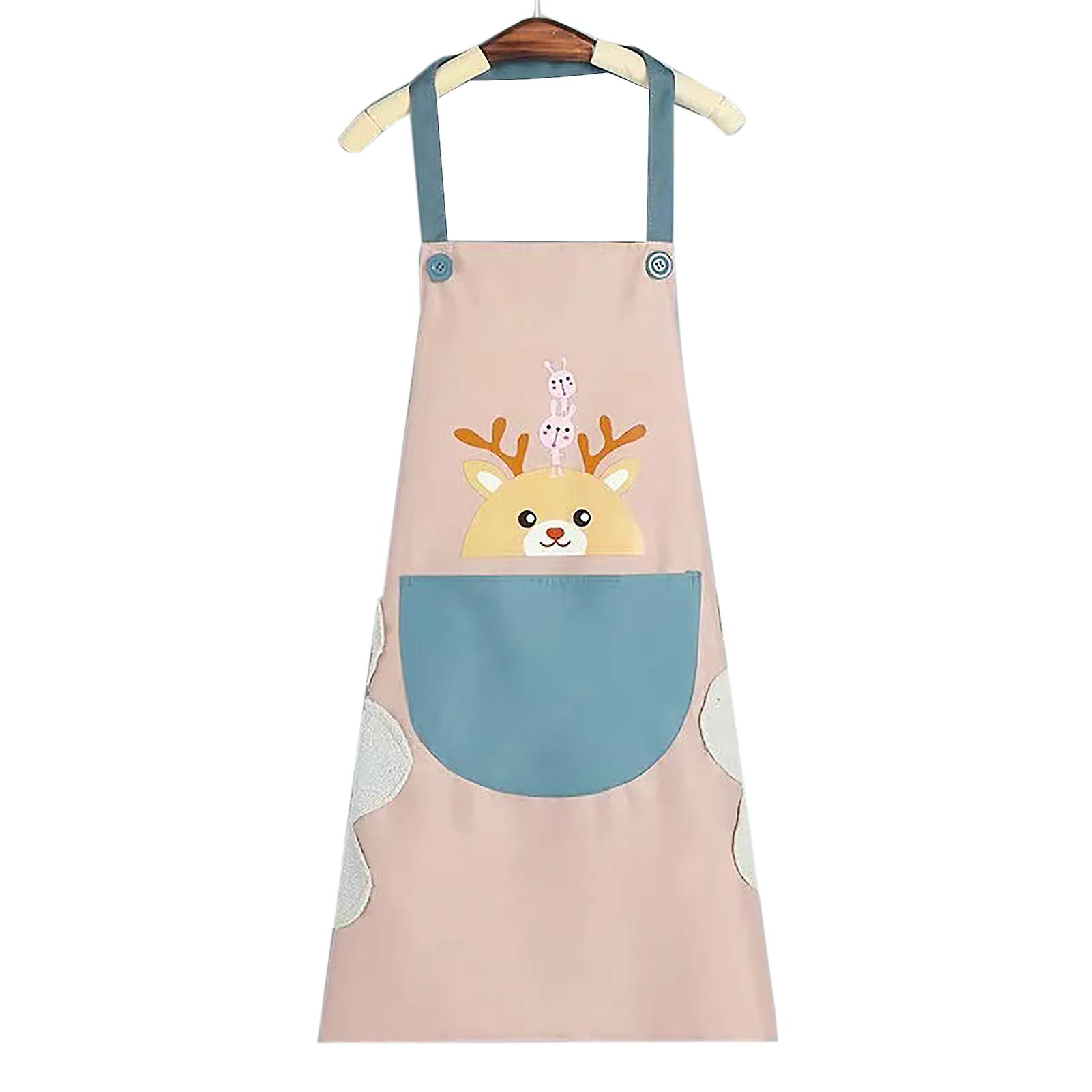 Cartoon Apron with Hand Wipe Pocket Waterproof Oil Proof Fashion Adorable for HouseholdPink Apron Blue Pocket