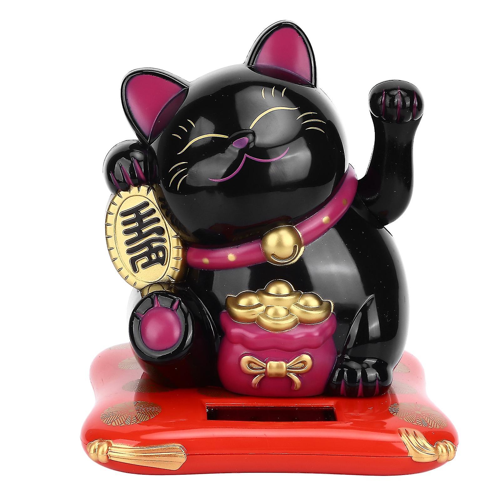 Lucky Cat Solar Powered Cute Decorative Wealth Welcoming Waving Wealth Welcoming Cat for Home Office Restaurant Black