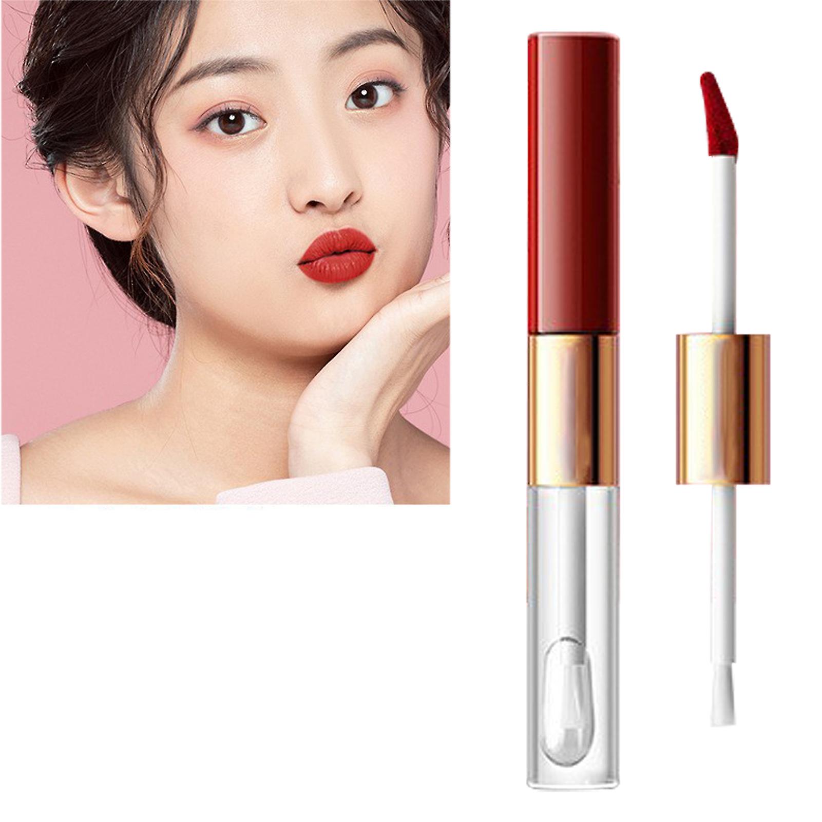 Double Head Lip Gloss Matte Moisturizing Waterproof Reddish Brown