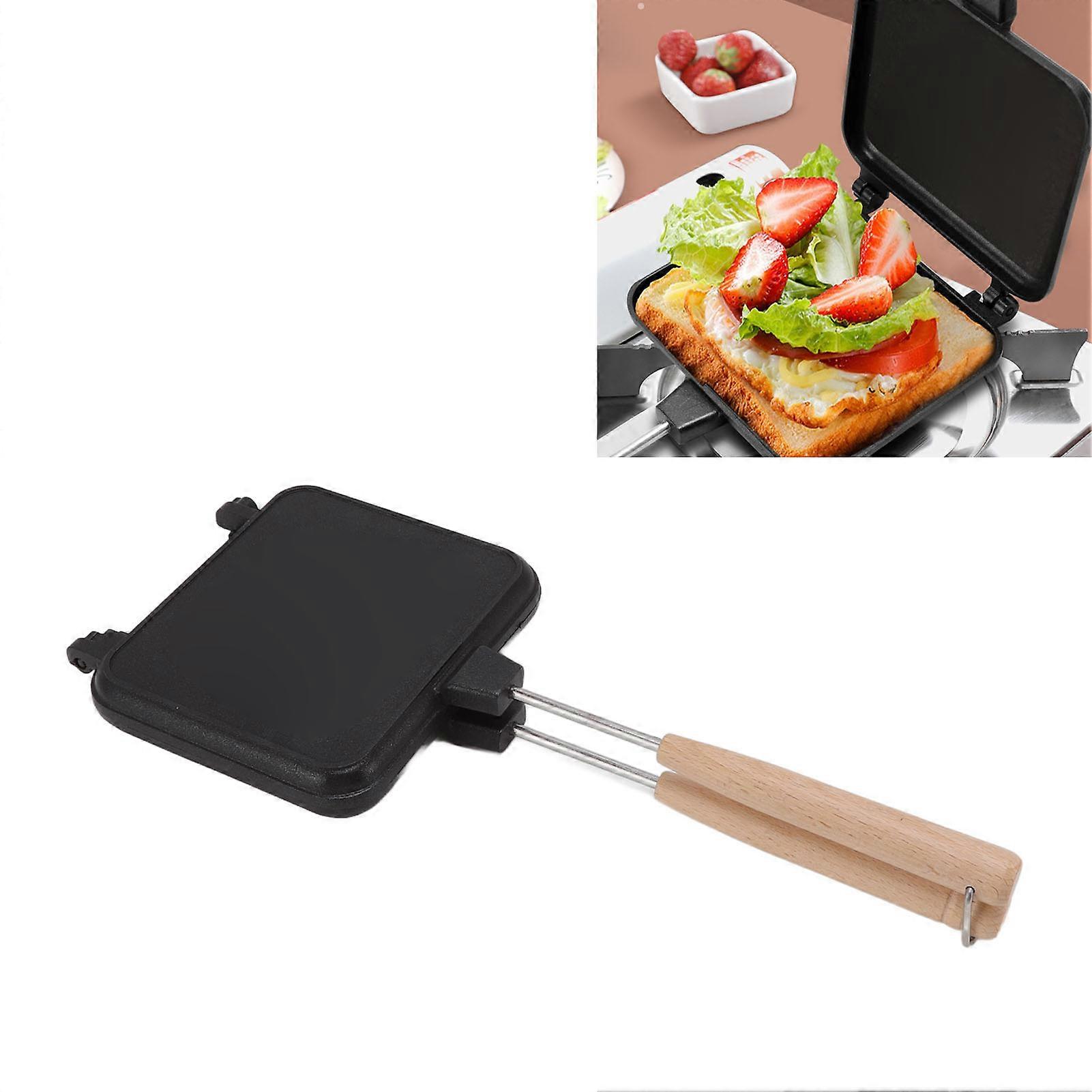Double Sided Aluminum Alloy Frying Pan 14x14cm with Wooden Handles