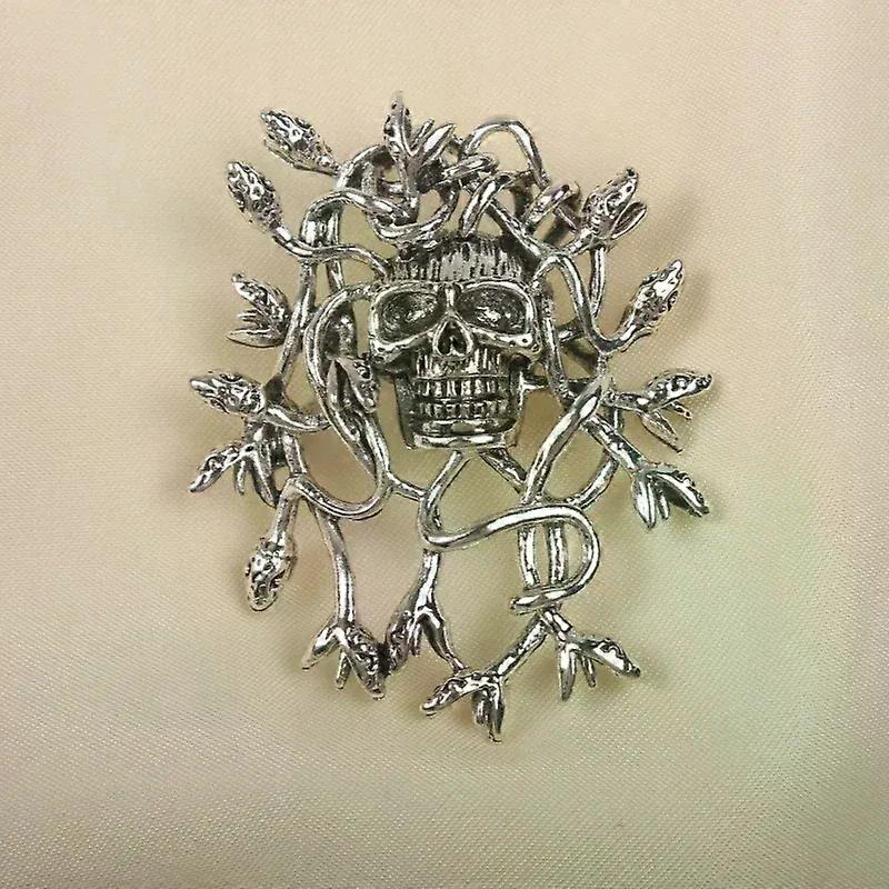 Exaggerated Punk Rock Personality Snake Wrapped Skull Head Brooch Stainless Steel Pendant Badge Men/Women s Clothing Accessories