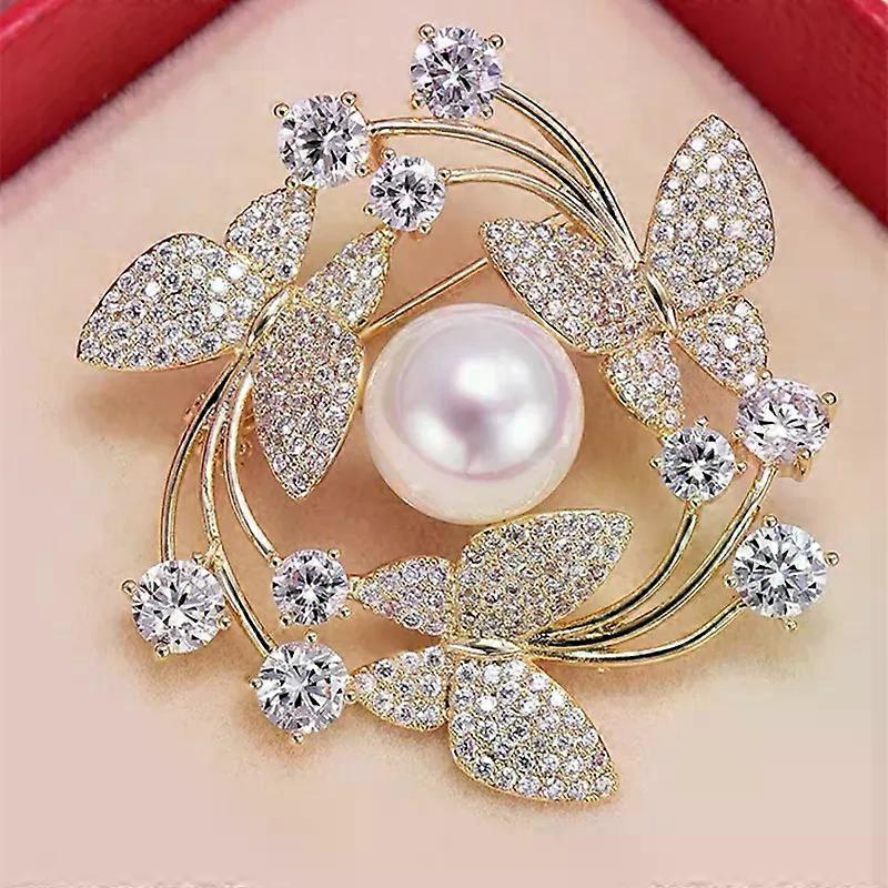Elegant Women Girls Exquisite Fashion Crystal Pearl Flower Brooches Pins High-end Lady Rhinestone Suit Coat Accessories Jewelry