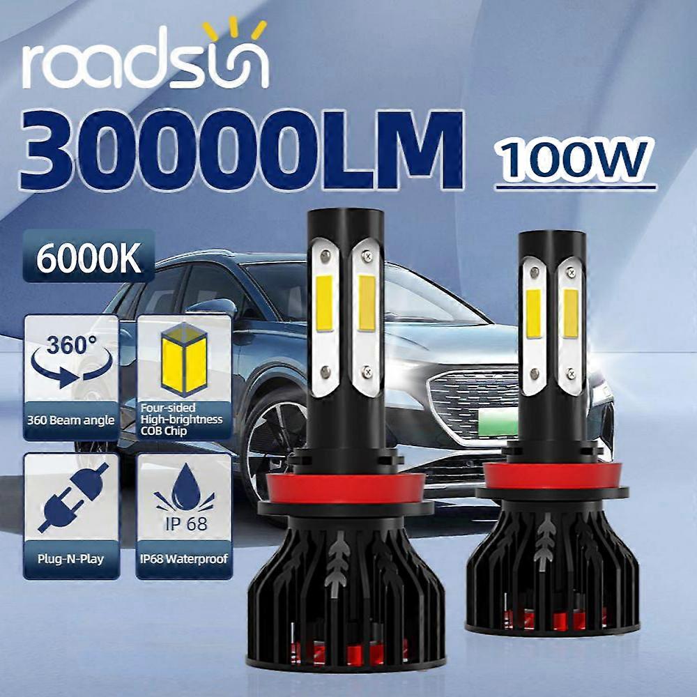TEENRAM 30000LM 2PCS H7 H11 9005 9006 H4 H13 9007 9004 Led Headlights 100W With Cooling Fan 800% Brightness Easy Installation