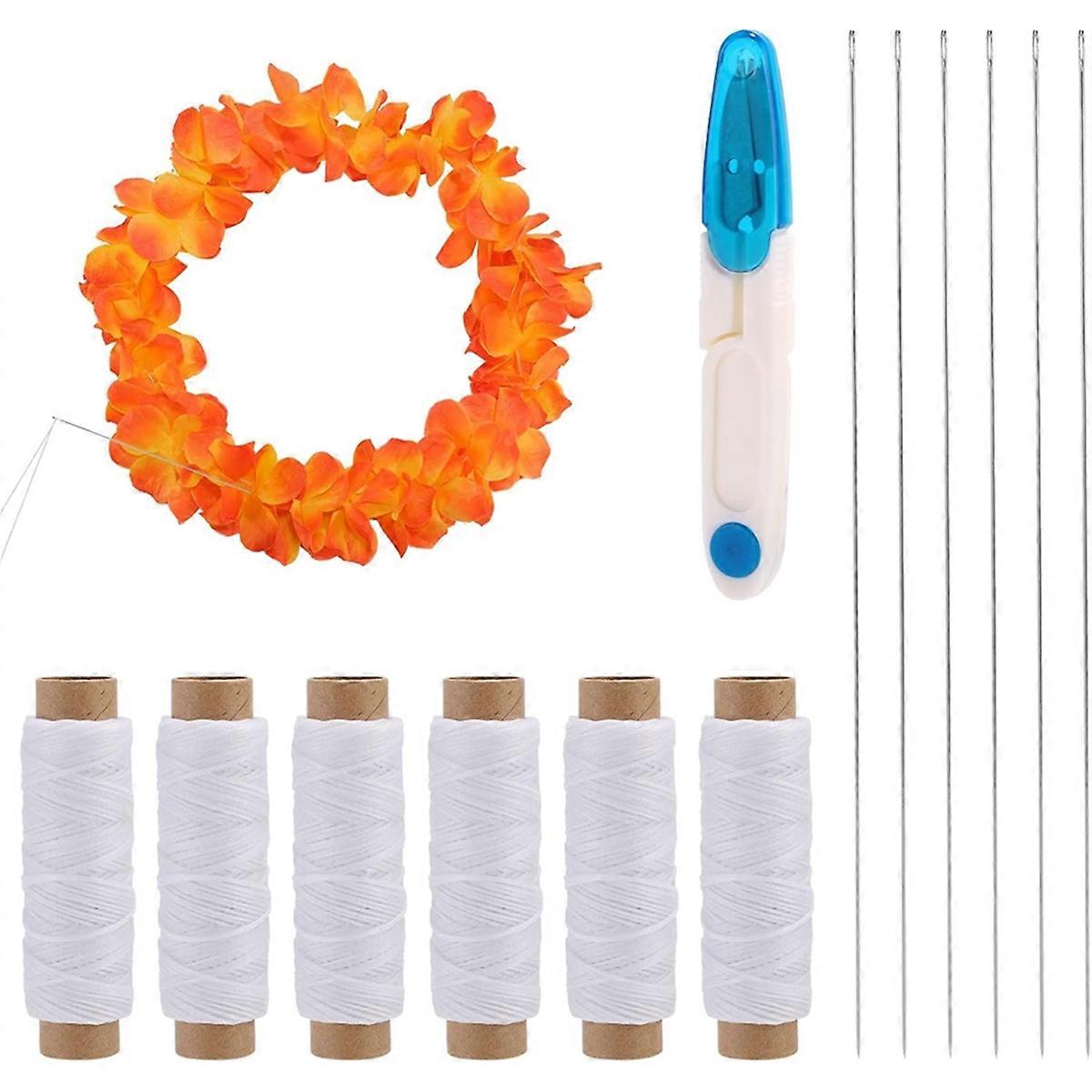 13pc Lei Needle-Kit for Flower Wreath-Making,6pc Long-Needles 6 Twine Rolls 1 Sewing Scissors for D