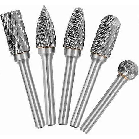 5pcs 6mm Shank 10mm Head Tungsten Carbide Double Cut Rotary Burr Set for Woodworking Engraving Grinder Carving Burr Set