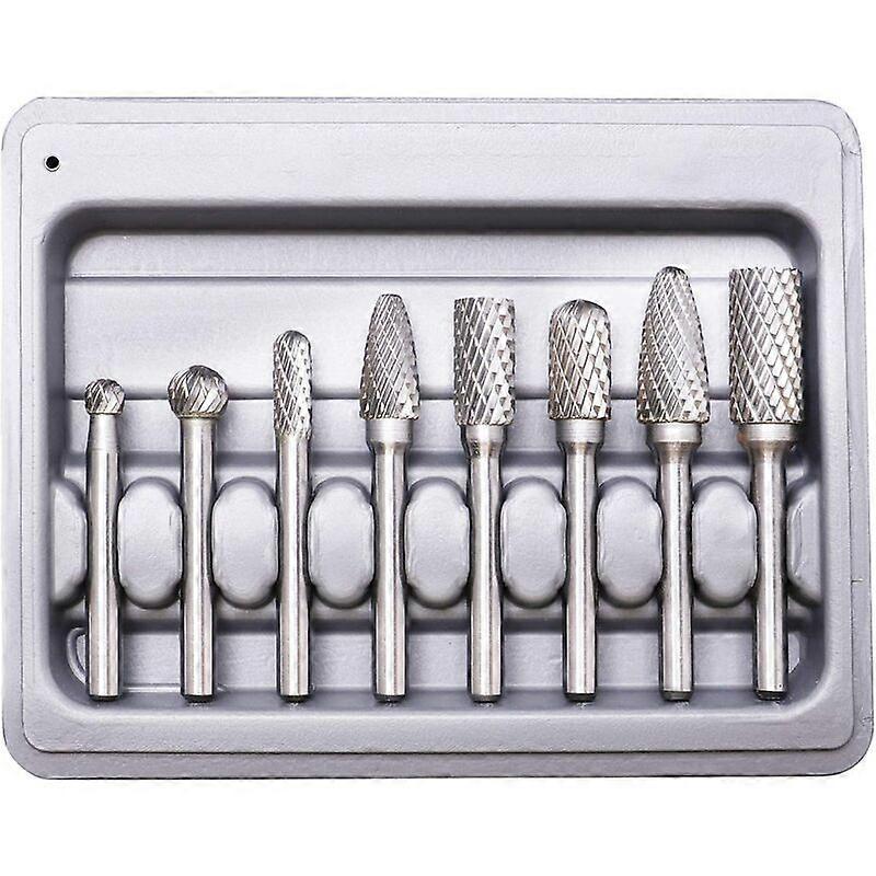 Rotary Burrs, Double Cut Tungsten Burrs, 8 Pieces Double Cut Tungsten Steel Solid Carbide Rotary Burrs Set 6mm Shank for Rotary Tools Electric Drill,