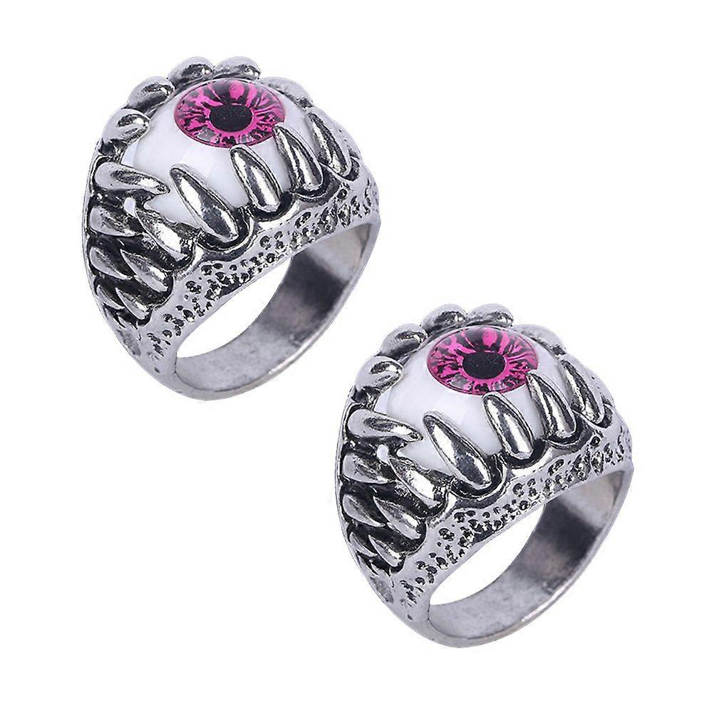 2pcs Men's Dragon Claw Evil Devil Skull Eyeball Ring Gothic Biker Unique Eyes For Halloween (#10)