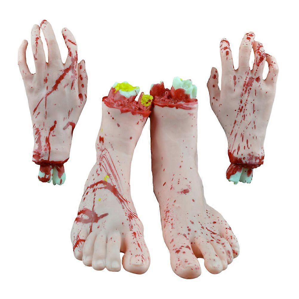 4 Pcs Chopped Human Parts Set Terror Props Broken Hand Broken Foot for Halloween (Skin Color)