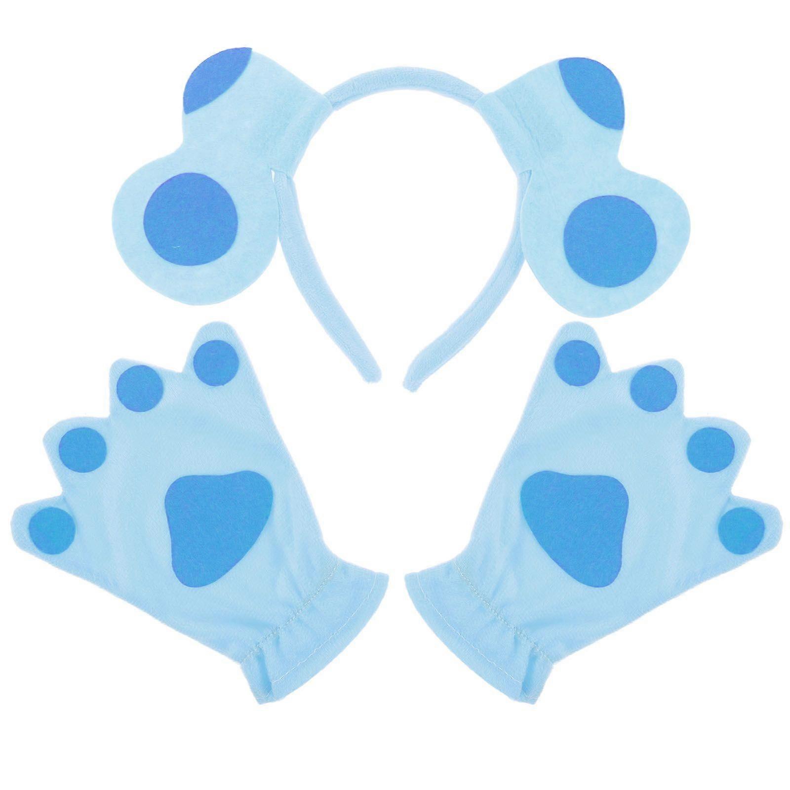 1 Set Soft Faux Fur Dog Ears and Paw Cosplay Animal Ear and Paw Dog Ears Headband with Paws Plush Furry Claw Gloves for Halloween Birthday Party