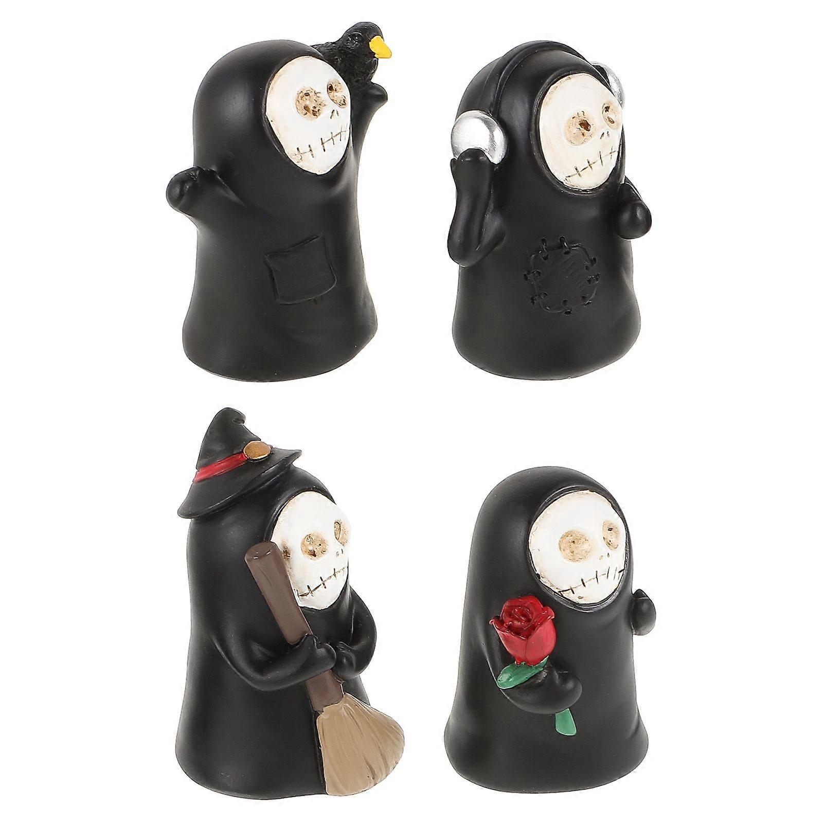Description Transform your home into a spooky haven with our new Skull Face Wizard Halloween Ghost Decorations. These , mysterious robe figures are fit for adding a touch of eerie elegance to your Halloween setup. Crafted from sturdy resin, these decorations are designed to last, ensuring you can enjoy them year after year. Features -Color:Multi -Material:Resin -Size:6.50X4.00X4.00cm/2.55X1.57X1.57in -Skull ghost design: features a unique skull wizard design that adds a touch of horror and mystery to your halloween decorations - black robe: the robe design is both eerie and elegant, making it a standout piece for any halloween setup -Home and desk decor: fit for enhancing the spooky atmosphere of your home or office desk, bringing the halloween spirit to any space -Firm resin material: made of resin, these decorations are built to last and resist damage, ensuring they can be used year after year -Value set: comes as a set of multiple pieces, offering great value and allowing for versatile decorating options throughout your spacePackage list: 4 x ornaments