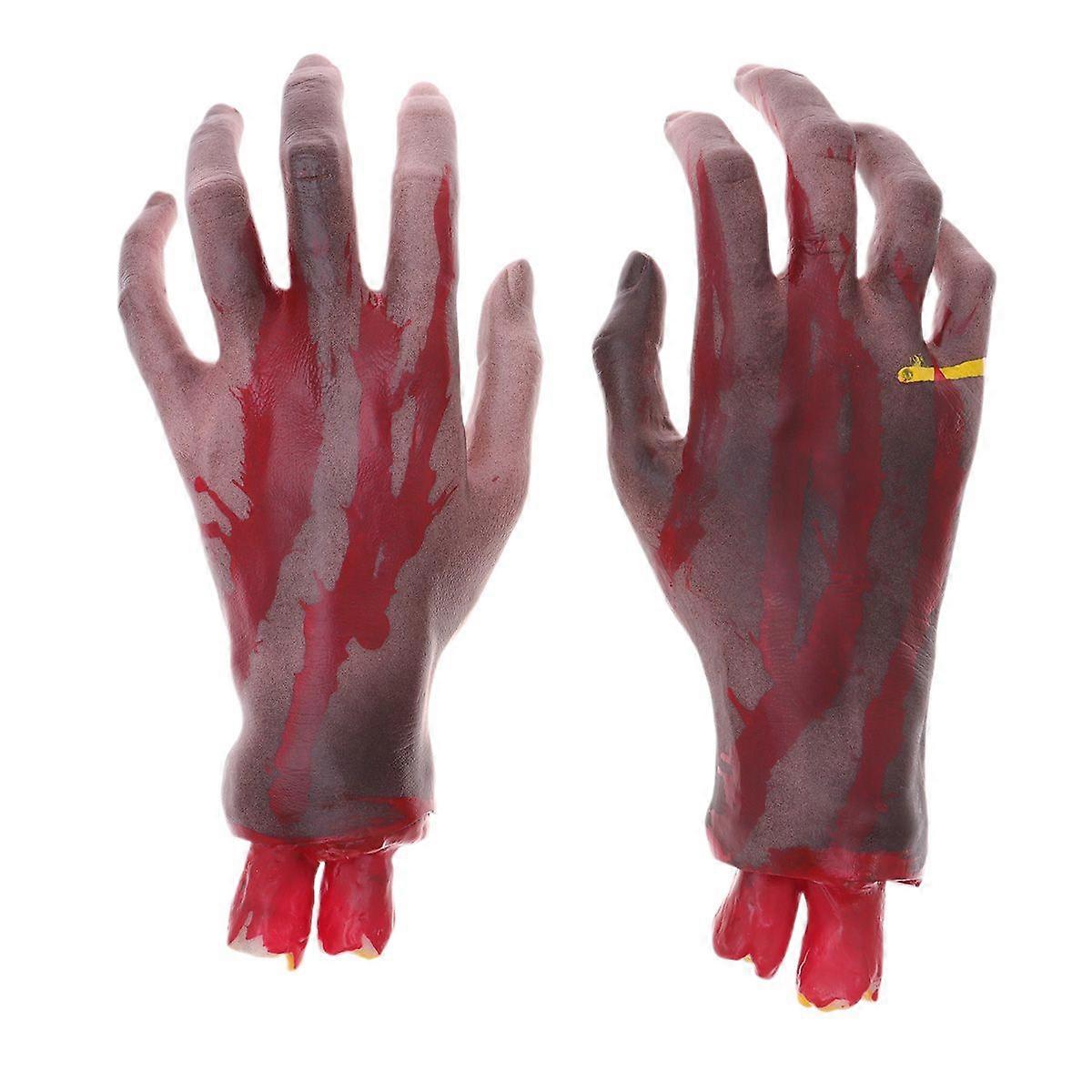 1 Pair Black Halloween Horrific Bloody Broken Hand Realistic Fake Creepy Severed Hand for Halloween Carnival Club Decoration Prank Props Haunted House