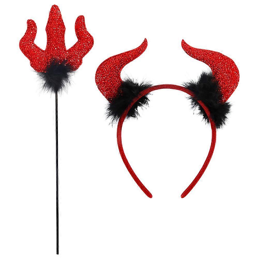 1 set of Cosplay Headband Devil Theme Headband With Devil Fork Prop Devil Horn Headband