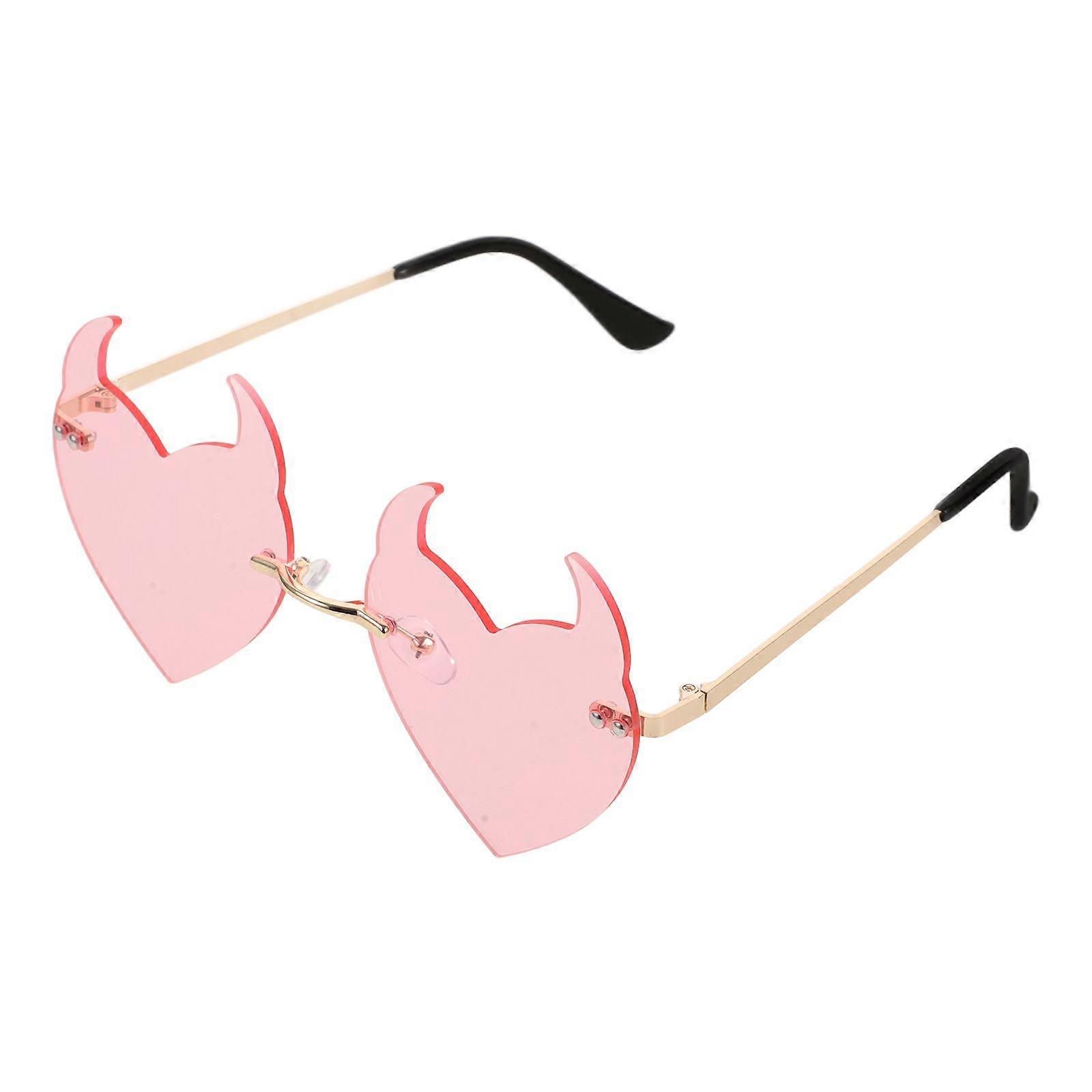 Rimless Sunglasses Cute Cartoon Devil Sunglasses Beach Party Sunglasses Heart Shape Glasses