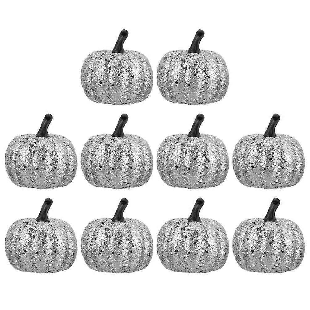 Description If you are looking for a pumpkin prop that help add more festival atmosphere, or if you want to make your Halloween look more unforgettable, then, do not miss our artificial pumpkin decorations. Made of foams materials, they are safe and durable for long time to use, can be good centerpiece or gift. Features - Color: Silver -Material:Foams. - Size: 5.50X5.50X5.50cm/2.16X2.16X2.16in - This pumpkin prop is with delicate color, very delicate to bring you better visual enjoyment. - Made of foams materials, they are safe and durable, with details and well-made, decorate your party simper and more exquisite. - Compact size and light weight, easy to take, good for both adults and kids to have more joy. - Can also be a special gift for your family or friends on Halloween, Thanksgiving, fall festival and more holidays. - Multi-functional, can be table centerpieces, bag fillers or just for personal collection.Package list: 10 x Halloween Fake Pumpkins