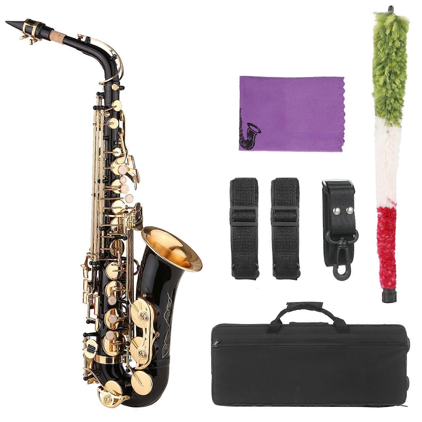 Eb Alto Saxophone Black Paint E-flat Sax for Beginner and Intermediate Players Brass Body with Mouthpiece Carrying Case Cleaning Brush and Straps