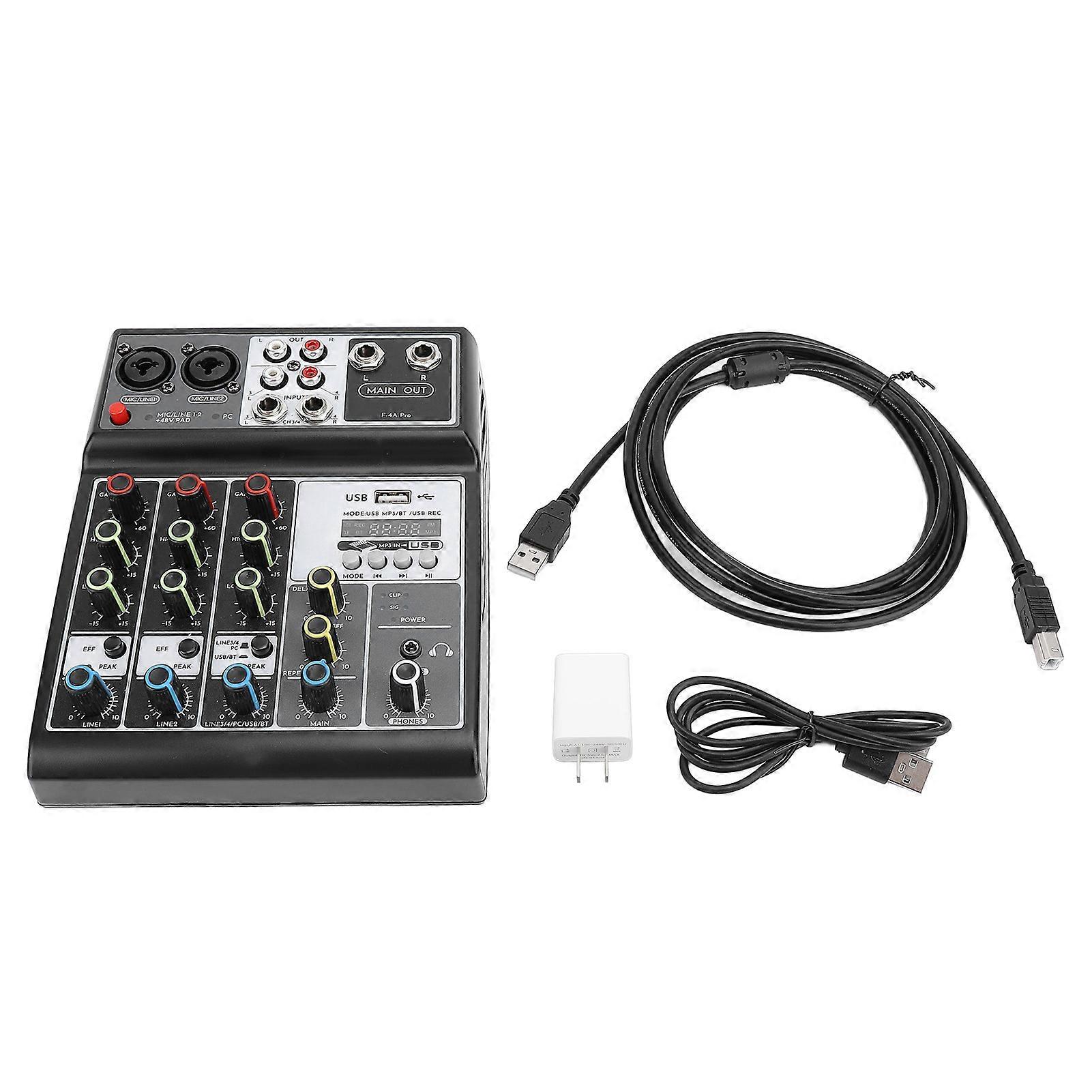 Digital 4 Channel Sound Mixer Mini Mixing Console for Recording Live Performance with 100-240V US Plug Compact Audio Mixer