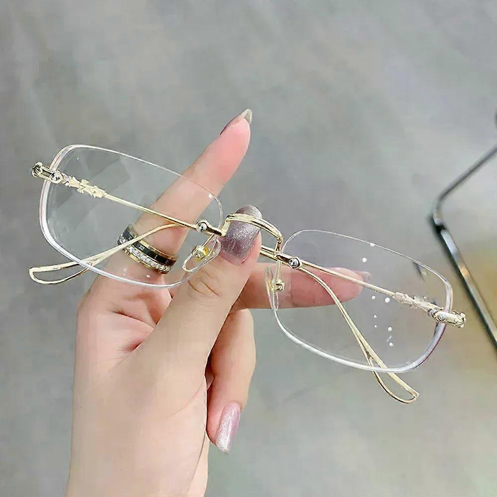 Fashion Eyeglasses Frameless for Women Men Silver Rectangle Glasses Anti Blue Light Small Square Sunglasses with Metal Frame