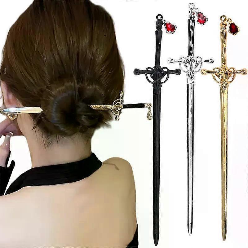 Vintage Chinese Style Sword Gemstone Pendant Tassel Hair Stick for Women Metal Hanfu Chopstick Hair Sticks Hair Accessories